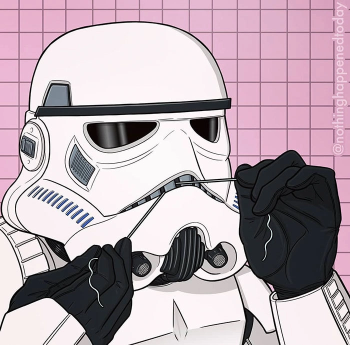 В своих работах мужчина пытается угадать, что делают культовые персонажи фильмов, мультфильмов и сериалов в то время, когда мы их не видим. Знаете, как Ариэль пытается выбраться из пластика? Или как Чубакка бреет ноги? Приготовьтесь...