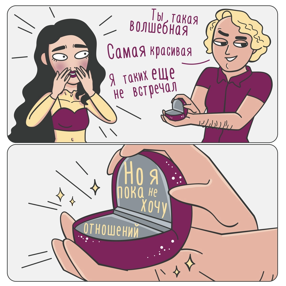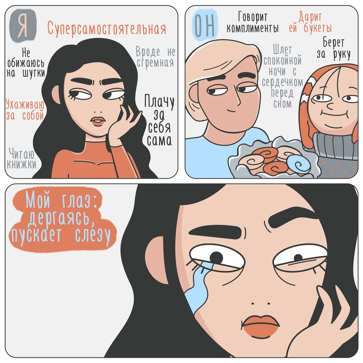У вас когда-то были проблемы в отношениях с противоположным полом? Тогда вы точно поймете комиксы Муны Марс. Она с иронией обыгрывает все возможные боли и беды одинокой девушки в XXI веке.
