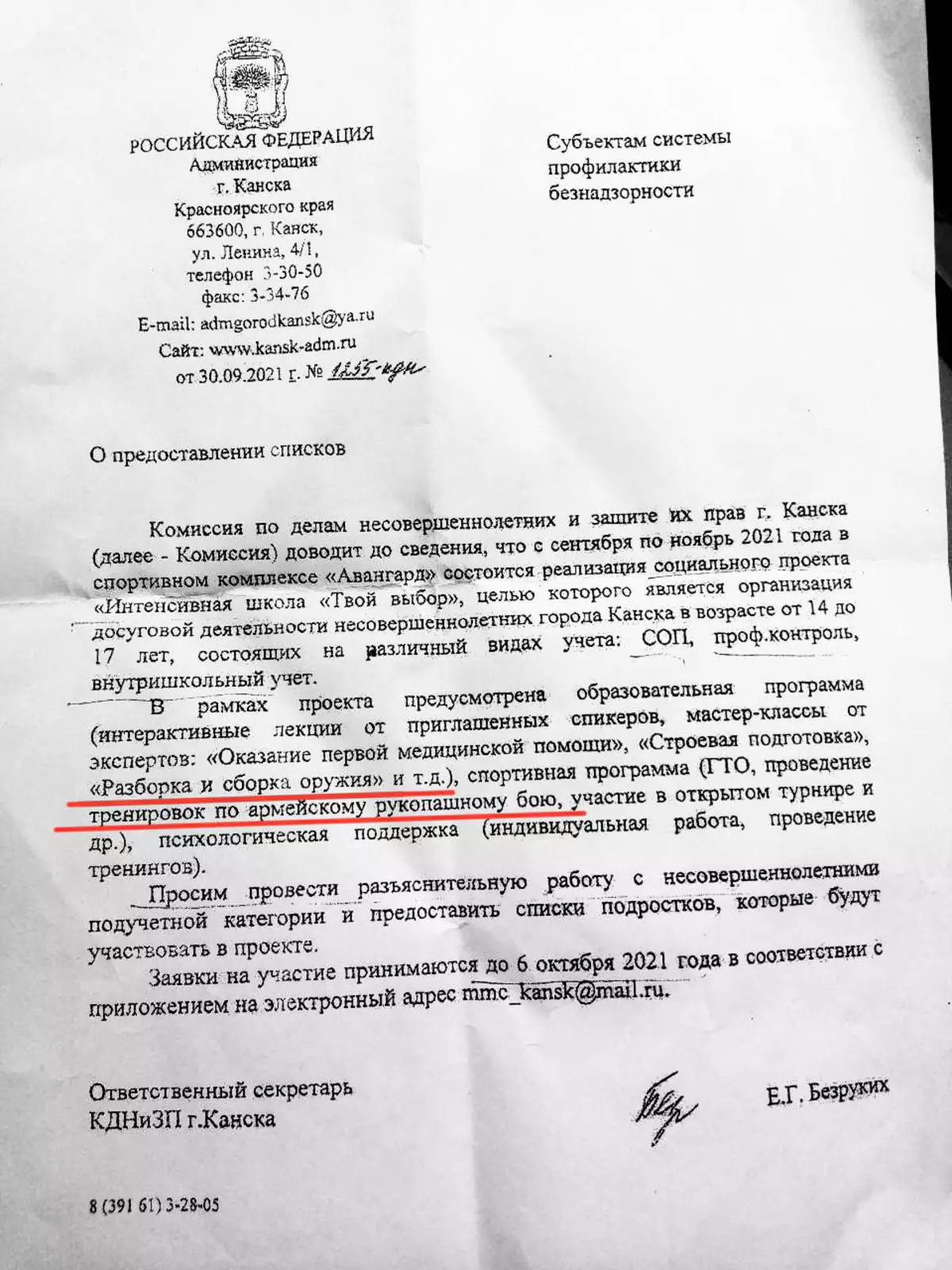В канском спортивном комплексе «Авангард» действительно проходят занятия «Интенсивной школы „Твой выбор“» для «организации досуговой деятельности несовершеннолетних города... состоящих на различных видах учета».