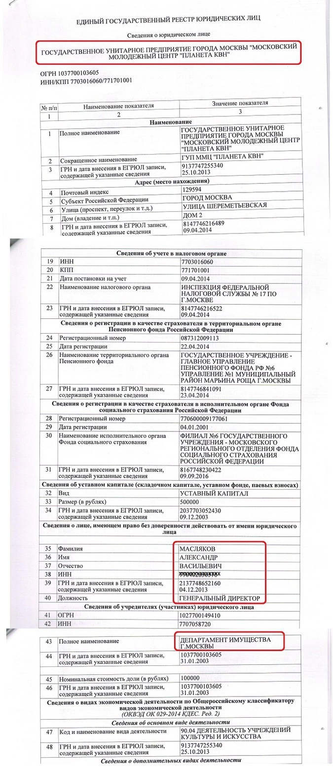 Да, кстати, обратите внимание на то, что Генеральным директором государственного унитарного предприятия «ММЦ «Планета КВН» каким-то загадочным образом оказался ни кто иной, как сам Масляков Александр Васильевич:
