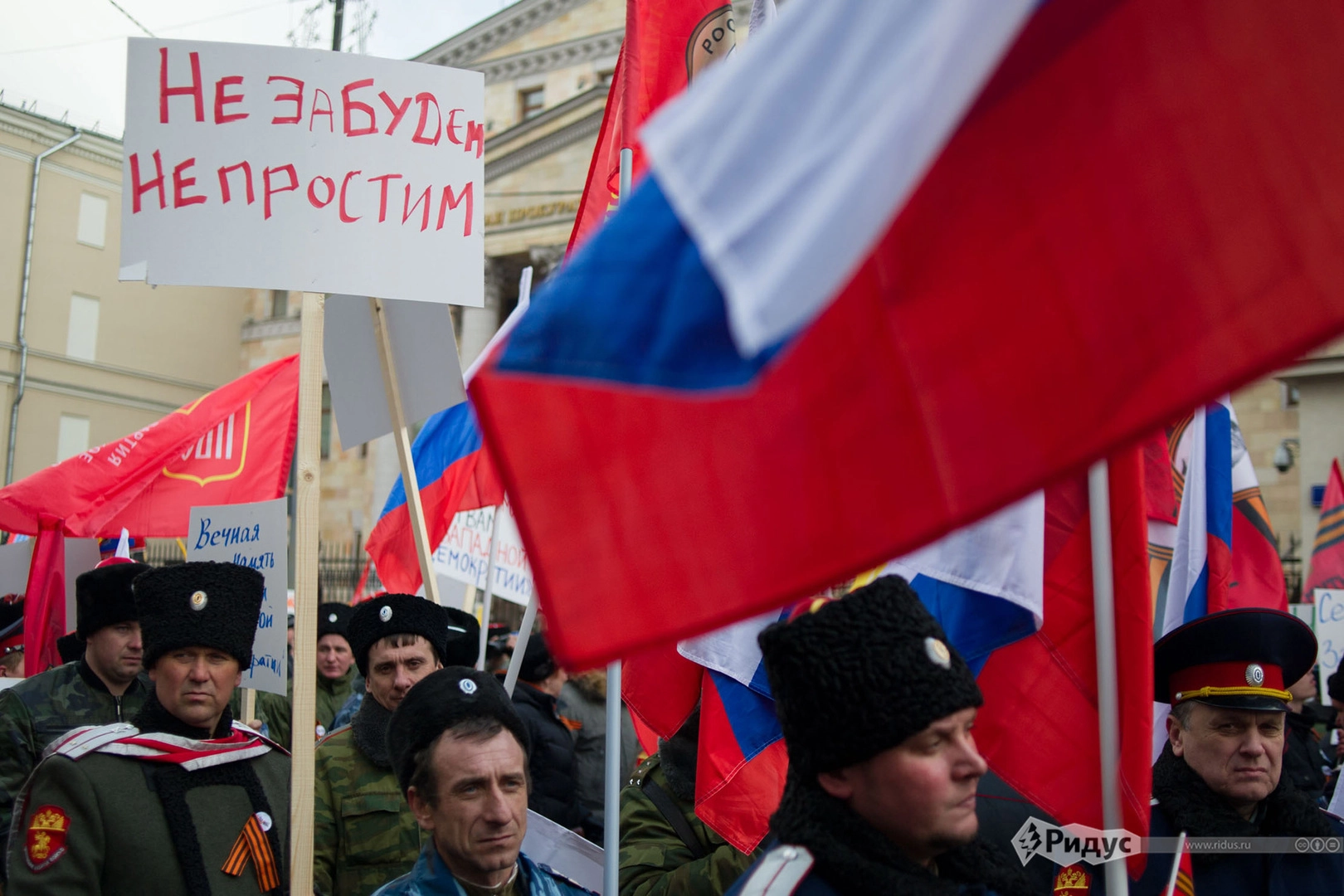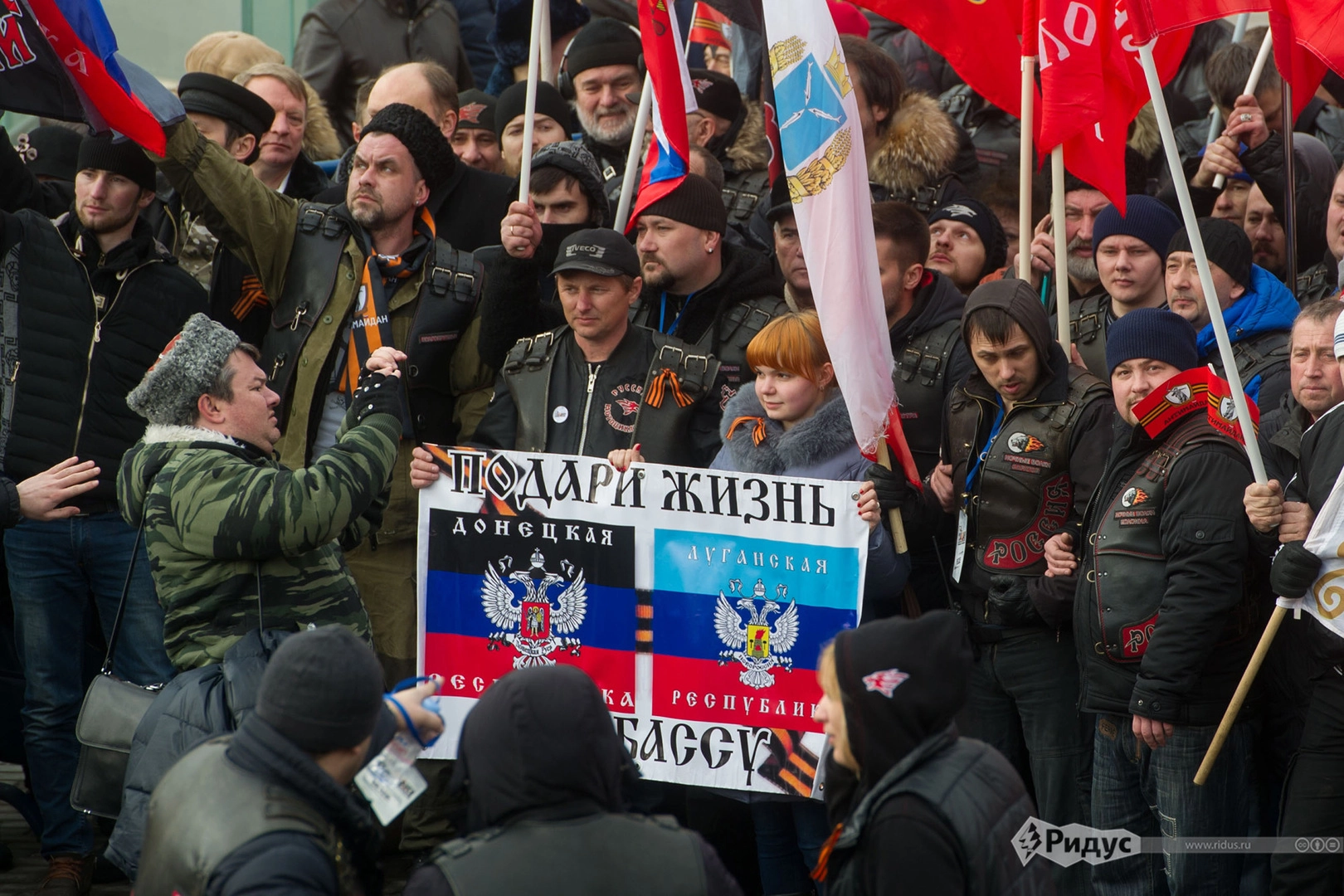 Большой субботний митинг в центре Москвы, приуроченный к годовщине Майдана и государственного переворота на Украине, собрал, по разным оценкам, от 35 до 50 тысяч человек. Вполне естественно, что народное выступление против горя и бед, которые принесла на Украину революция, проходило на фоне активной поддержки Донбасса. Среди множества флагов стяги ДНР, ЛНР и Новороссии занимали львиную долю. В колоннах шли не только москвичи, но и беженцы и даже ополченцы.