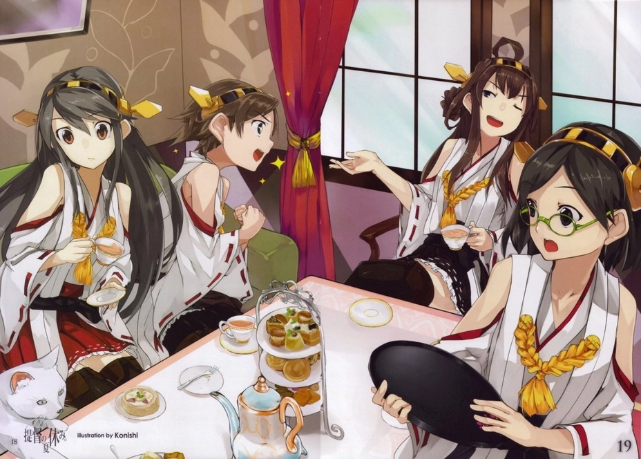 Быстроходные линкоры типа Конго. Слева направо: Харуна, Хиэй, Конго, Кирисима. Официальный арт художника Konishi