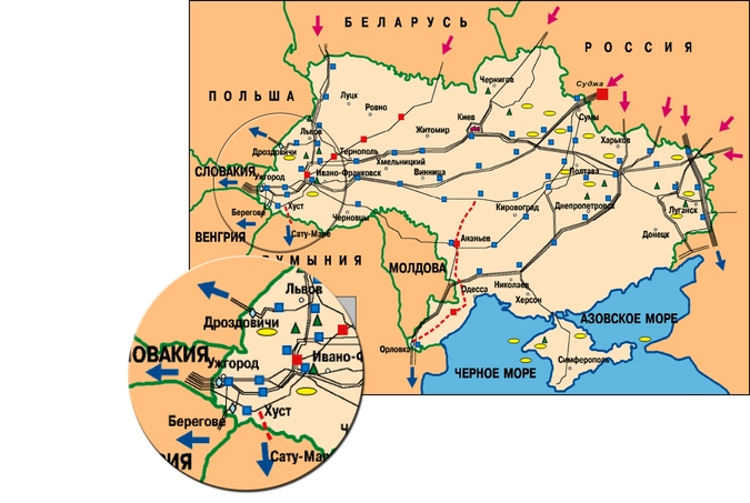 Кроме того, раздробленная Украина интересней США, чем неделимая, ещё и потому, что после отделения Крыма приоритет сменился в сторону Западной Украины. Да, там не добывают никаких ресурсов и отсутствуют высокотехнологические производства. Впрочем, одно весьма весомое преимущество у Западной Украины имеется: крупный трубопроводный узел в районе Львова и Ужгорода. Взяв его под контроль, Вашингтон сможет диктовать свои условия как продавцу - России, так и покупателю - Европе.