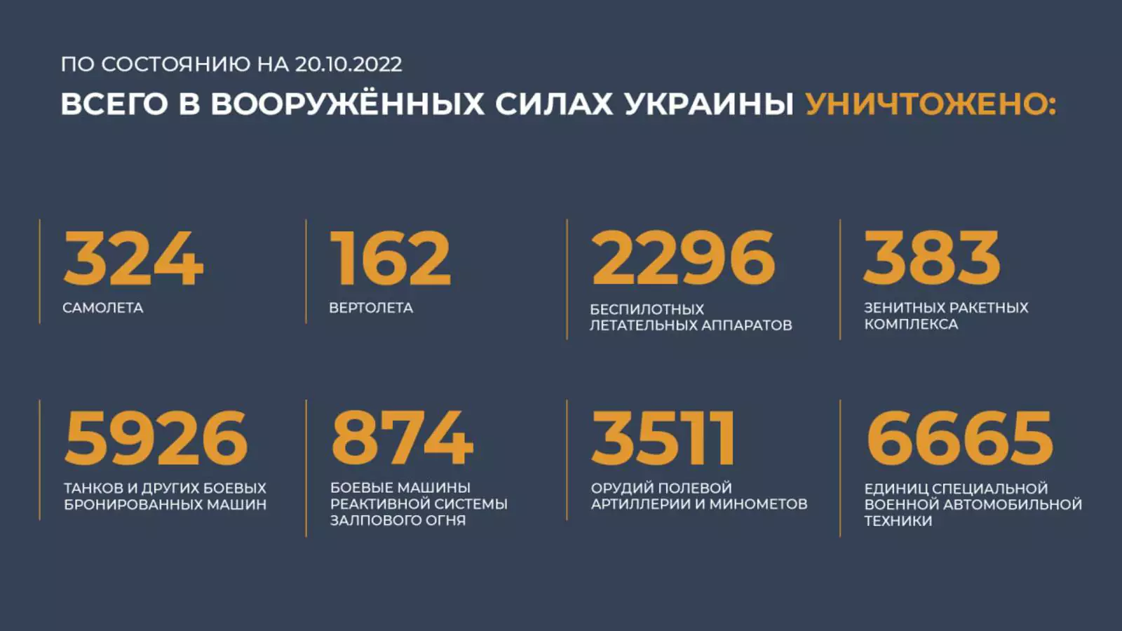 Оперативно-тактическая и армейская авиация, ракетные войска и артиллерия РФ поразили за минувшие сутки три пункта управления ВСУ, 72 артиллерийских подразделения, пять пунктов временной дислокации, четыре склада боеприпасов, хранилища топлива для военной техники, радиолокационную станцию контрбатарейной борьбы и радиолокационную станцию обнаружения маловысотных целей СТ-68УМ.