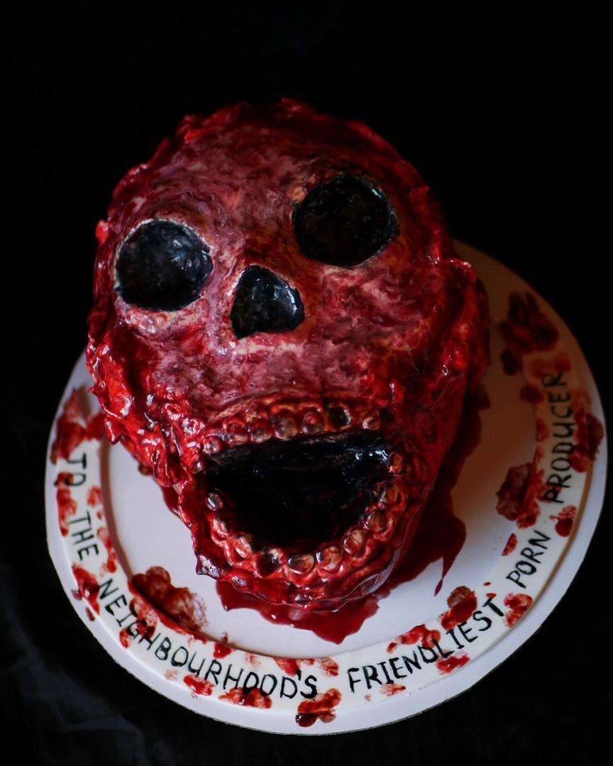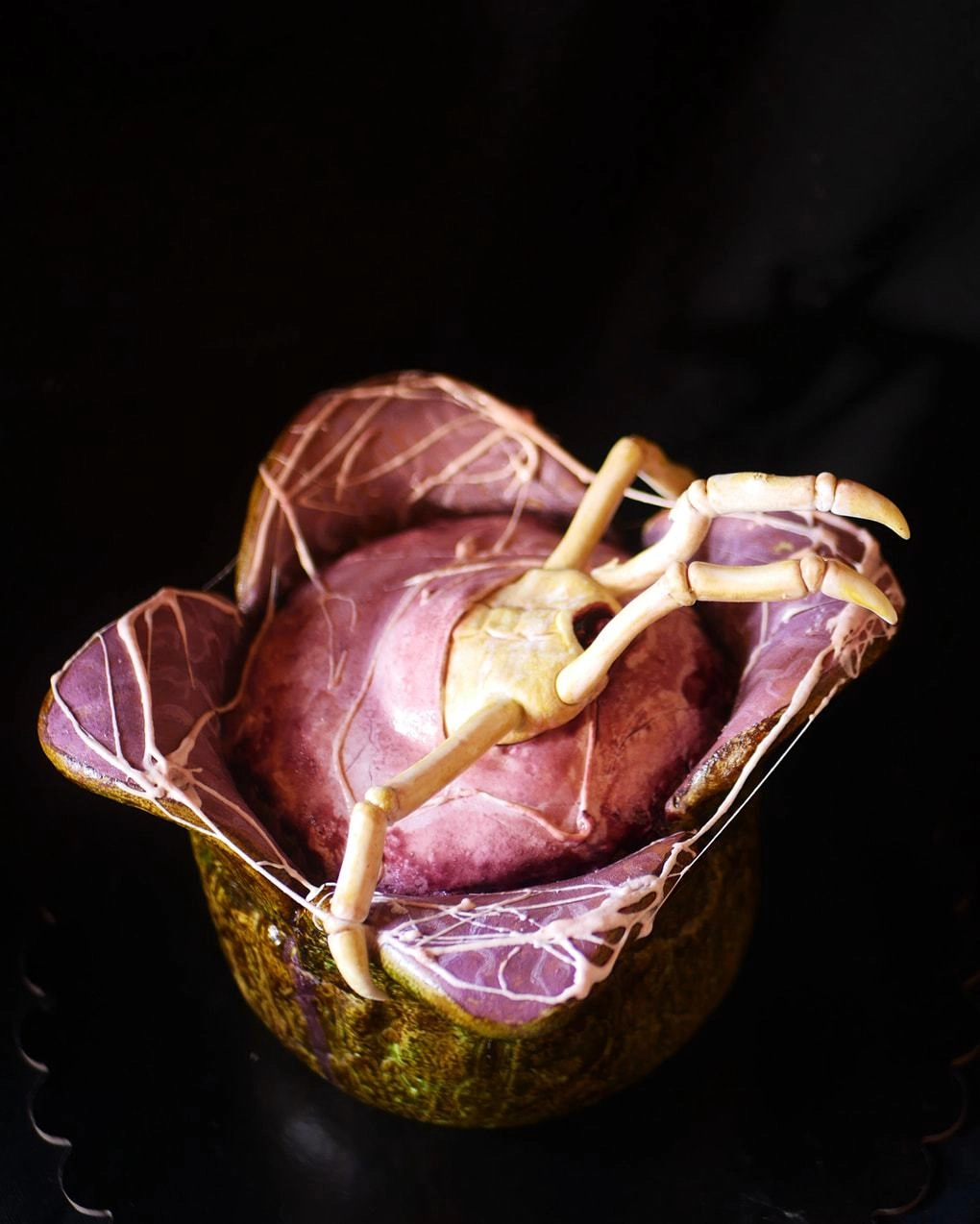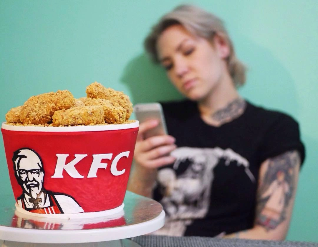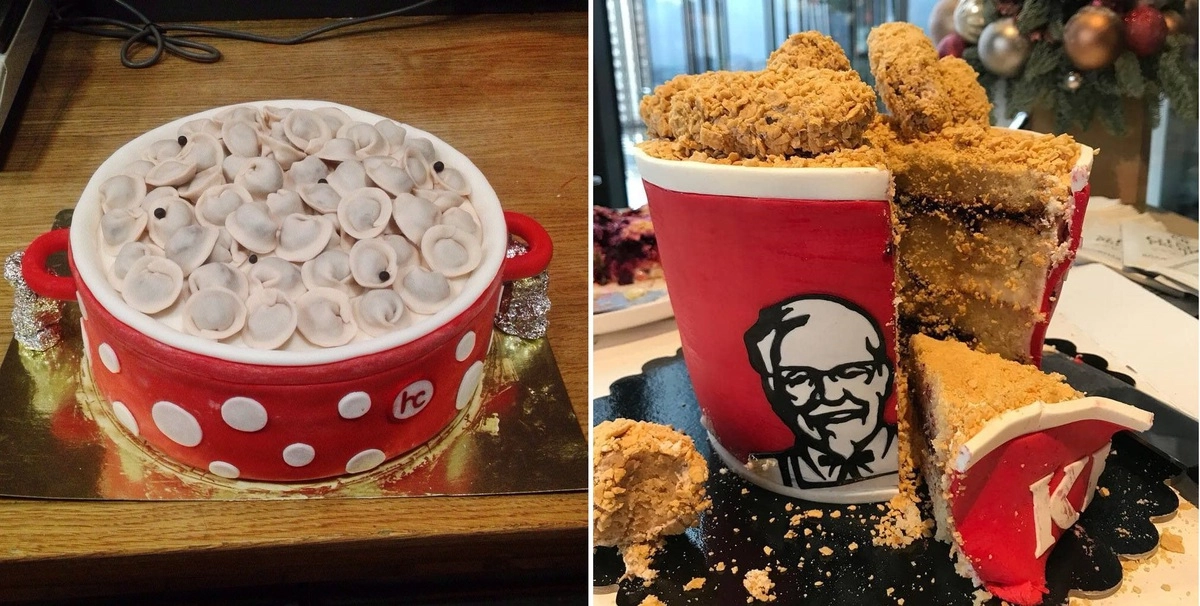 В кондитерском портфолио петербурженки есть торт в виде тазика оливье, миски с пельменями, стопки блинов, баскета с крылышками из KFC, лицехвата из «Чужого», живого голубя и массы других неожиданных вещей.