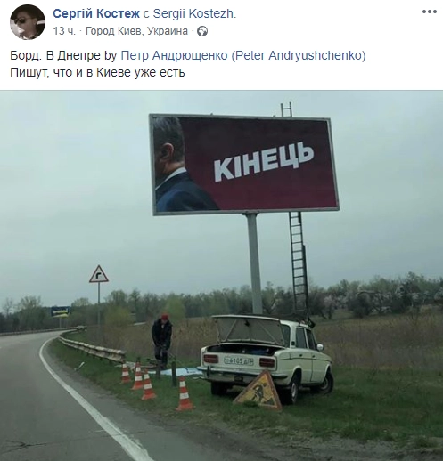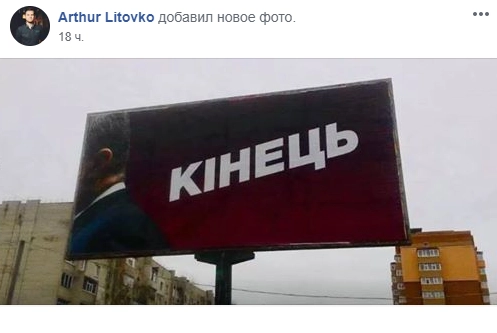 В городах Украины появились билборды с изображением затылка украинского президента Петра Порошенко и надписью «Конец». Пользователи Facebook разместили на своих страницах фотографии плакатов.