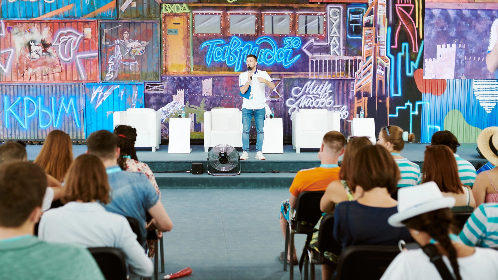 Форум молодых деятелей культуры и искусств «Таврида 5.0» посетили представители «СТС Медиа»: заместитель гендиректора по производству Максим Рыбаков и генеральный продюсер телеканала СТС Антон Федотов рассказали форумчанам о том, как создаются востребованные телевизионные проекты — и какие из них попадут в сетку вещания.