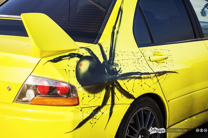 Теле- и радиоведущая Екатерина Каренина, единственная в России девушка-инструктор по контр-аварийному вождению, встречает корреспондента «Ридуса» на ярко-желтом «Lanсer Evolution» с аэрографией паука на правом борту. Катя 10 лет работала инструктором в школе водительского мастерства BMW, затем решила организовать собственную академию вождения, в которой является шеф-инструктором.
