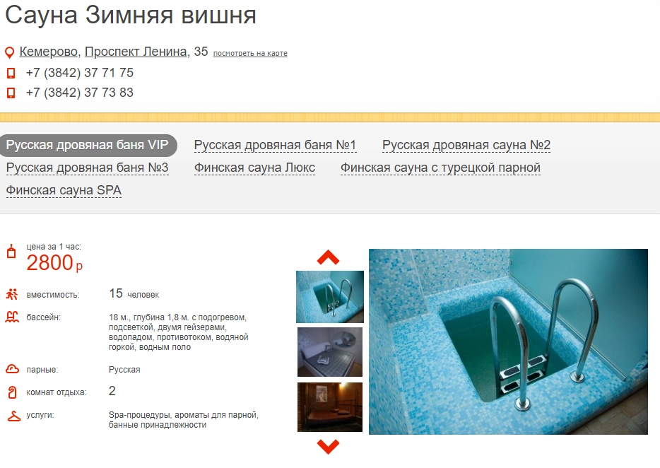 Сауна «Зимняя вишня» располагалась по адресу торгового центра в Кемерово, ул. Ленина, 35.