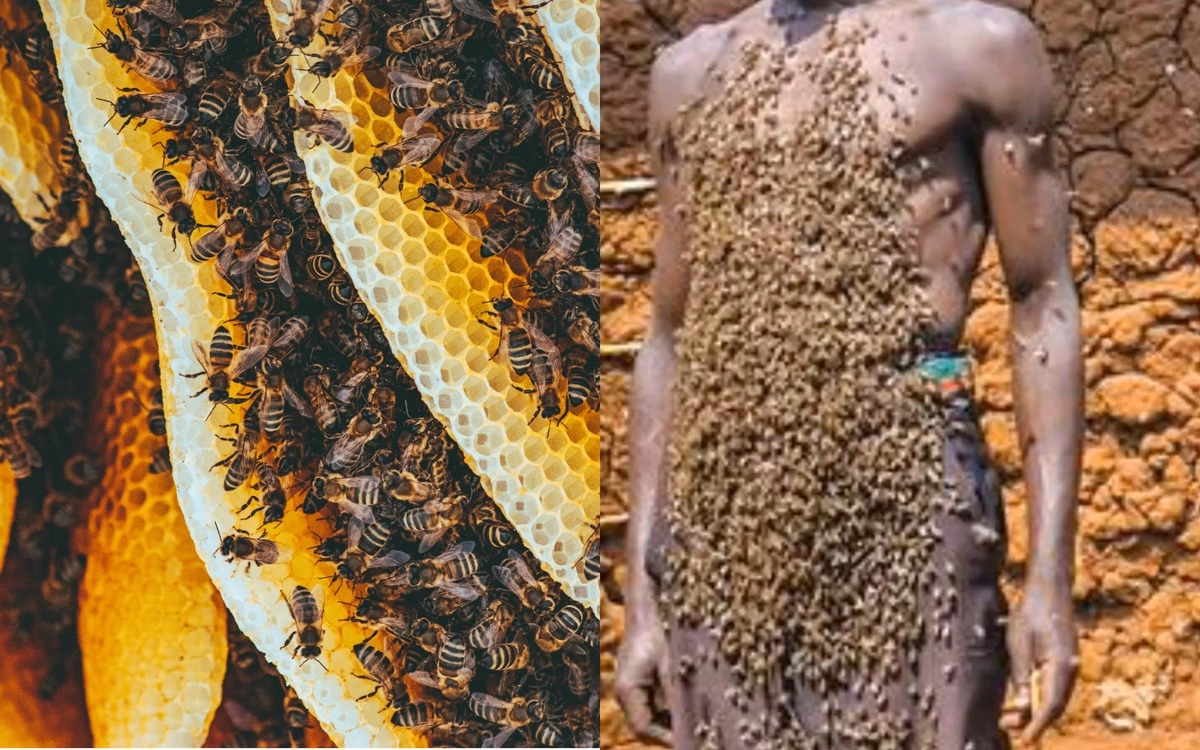 Пасечник из Руанды (Африка) по имени Ндайисаба, который называет себя Королем пчел, разводит этих медоносных насекомых крайне необычным способом: прямо на своем теле.