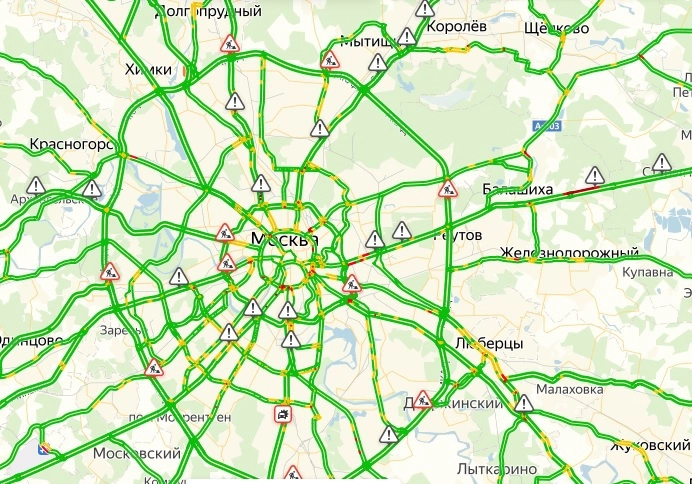 Столичные улицы и автострады, обычно переживающие утром час пик, на этот раз свободны. По данным сервиса «Яндекс.Пробки», средняя загруженность дорог в Москве по состоянию на 10 часов утра составляет 0 баллов. Свободно двигаться можно также и по ведущим к мегаполису подмосковным дорогам и федеральным трассам: крупные заторы отмечены только в районе Люберец и Балашихи.