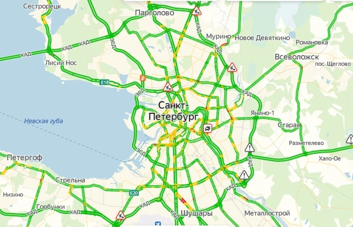 Ситуация в ряде других крупных городов страны хоть и чуть похуже, но похожа. Например, для Санкт-Петербурга и Казани «Яндекс.Пробки» указывают загруженность дорожной сети в 1 балл. В Северной столице наиболее сильные пробки отмечены на Охте, в районе Шушар и Московского вокзала. В Казани движение может быть затруднено при въезде в город с юга, а также в северных районах за рекой Казанкой.