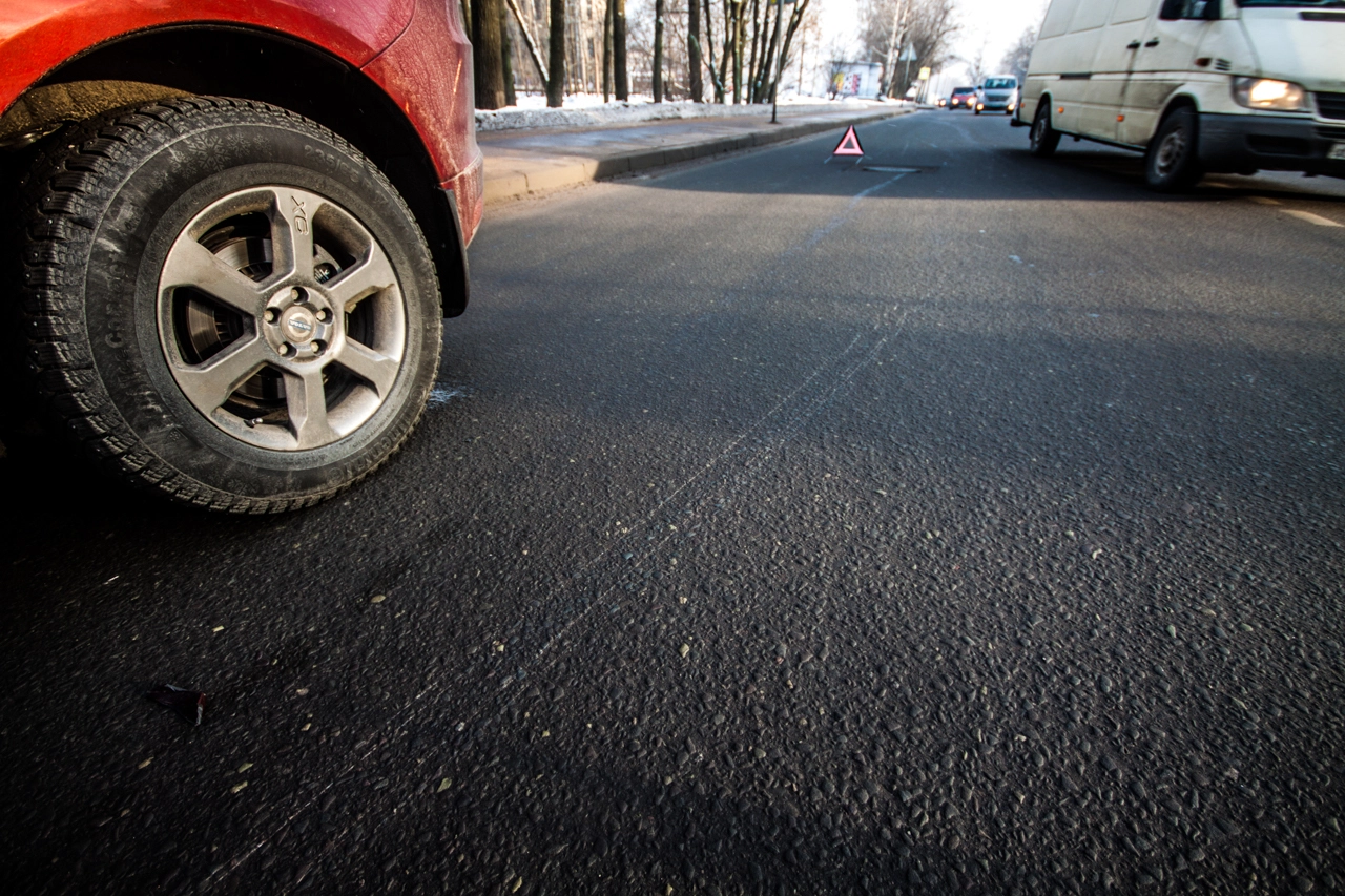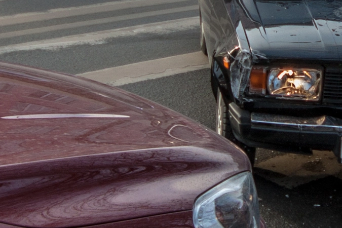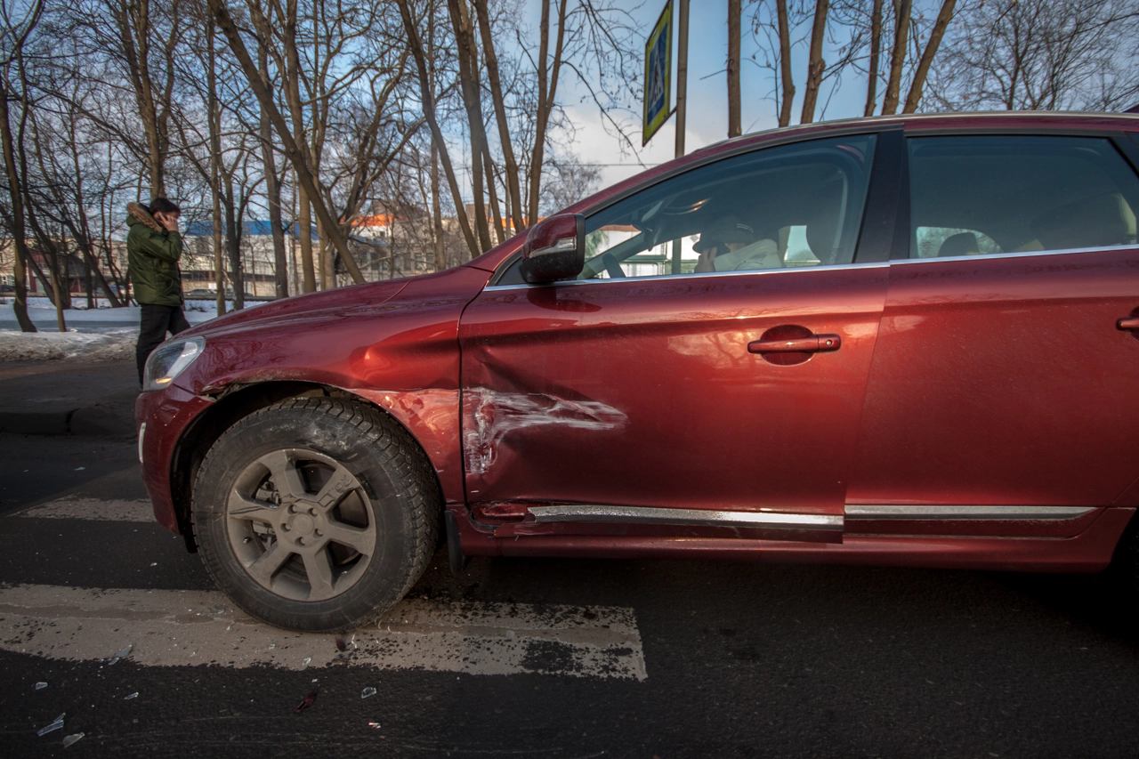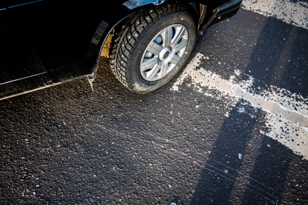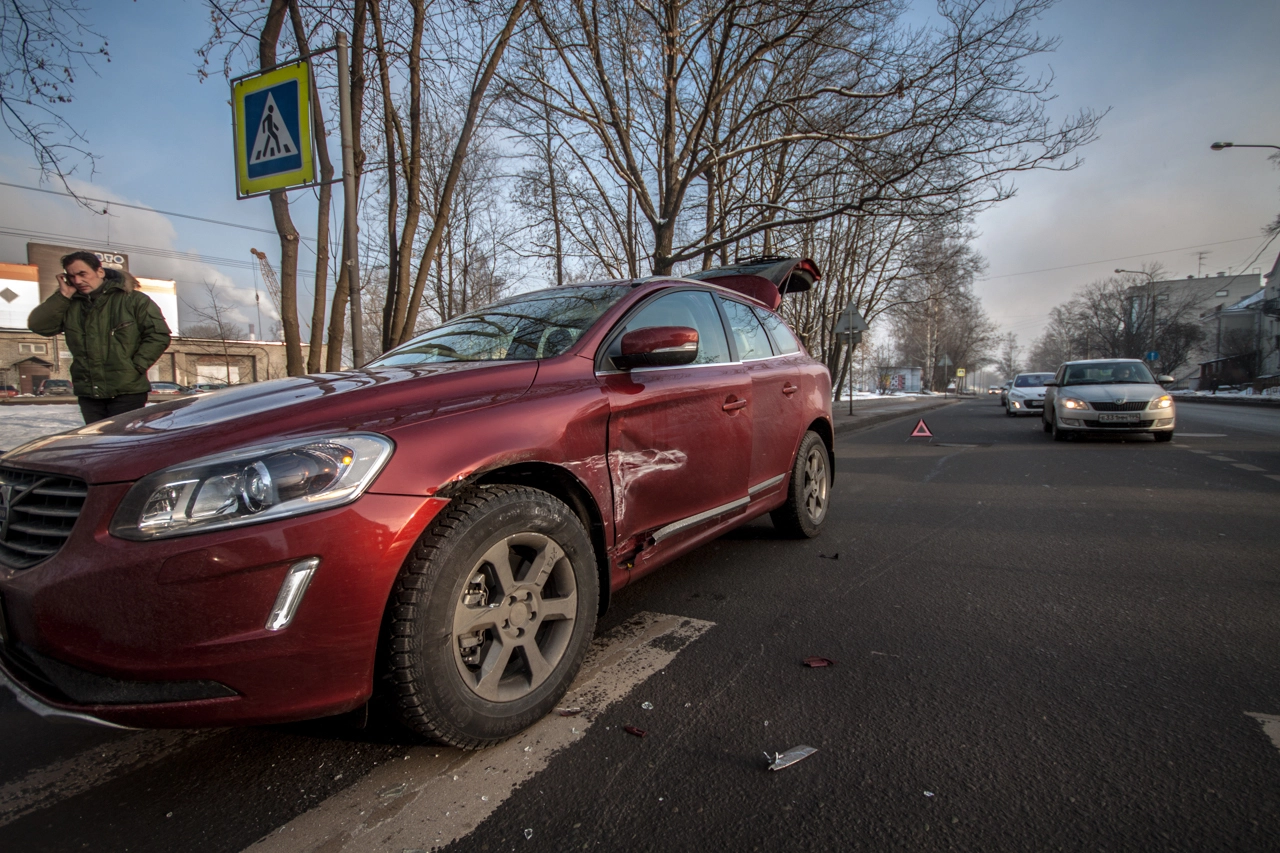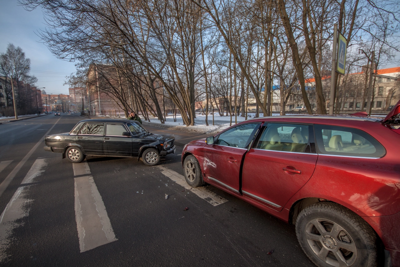 Со слов пешехода: «Собираюсь переходить проезжую часть по нерегулируемому пешеходному переходу. Убедился в том, что приоритет мне предоставляет а\м марки „Вольво“, двигавшаяся до этого по правому ряду Школьной ул. (дело происходило в Санкт-Петербурге — прим. „Ридус“), помню, что согласно последним поправкам к ПДД её никто не должен опережать не убедившись в отсутствии пешеходов, но выходя на проезжую часть я внимательно смотрю налево. А\м следующая во втором ряду снижает скорость перед п\п, но не останавливается, а проезжает дальше. Следующие за ней „Жигули“ находятся на достаточном расстоянии для торможения, и я нахожусь в поле зрения водителя, так что я делаю ещё шаг, но вижу, что водитель слишком поздно применил торможение и машина не сможет остановится до пешеходного перехода, так как пошла в занос на шипах. Финальную роль, как мне кажется, сыграла разметка пешеходного перехода, на которую водитель наехал левым колесом, из-за чего автомобиль без АБС начало разворачивать вправо, после чего он зацепил стоящую „Вольво“ и довернул в сторону меня. Глазомер, ловкость и постоянные занятия спортом спасли меня от травм и позволили увернутся от приехавшего на моё место автомобиля».