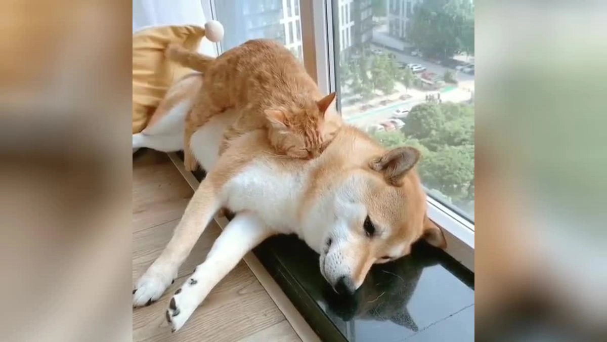 Кто придумал, что кошки и собаки постоянно должны ругаться или ненавидеть друг друга? Данные стереотипы уже давно были разрушены сотнями видео и фото, на которых животные ведут себя как лучшие друзья. Этот ролик на первый взгляд один из таких. В нем кот умиротворенно разлегся на собаке, уткнувшись носом в ее шею. Правда, что-то нам подсказывает, что достигнута эта идиллия была по принципу «унижай, доминируй и властвуй».