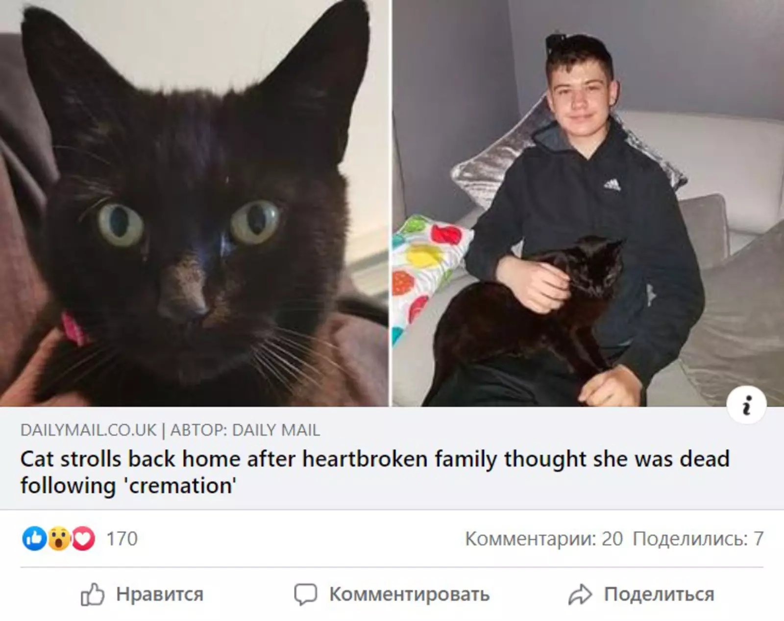 Ранее ridus.ru писал про еще одного кота, который вернулся домой после того, как его кремировали.