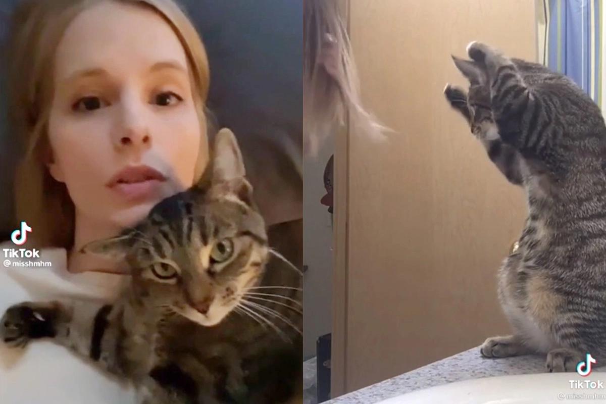 Кошка, подражающая хозяйке в расчесывании волос, очаровала соцсети