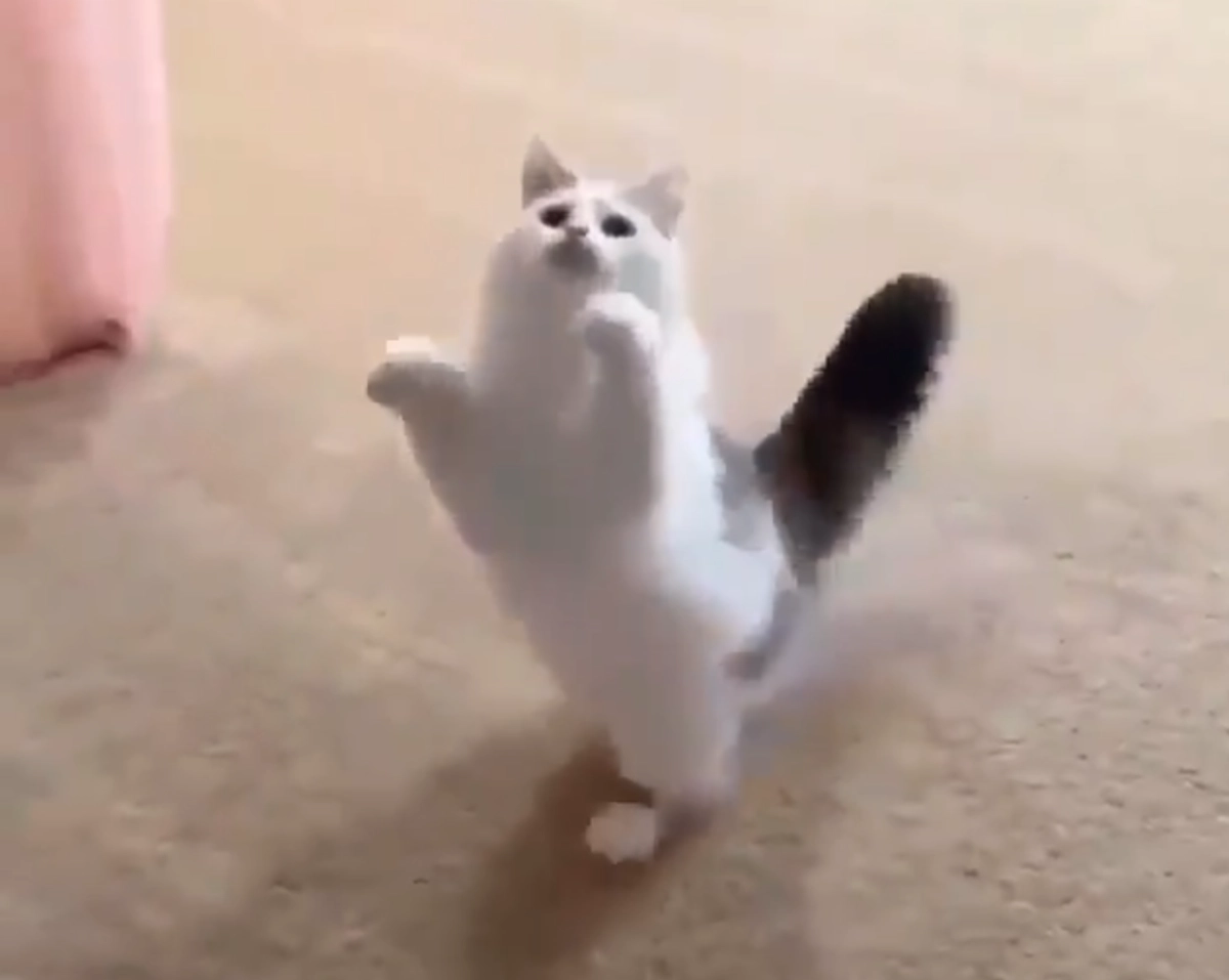 Кошка проскакала на задних лапках через комнату и очаровала интернет