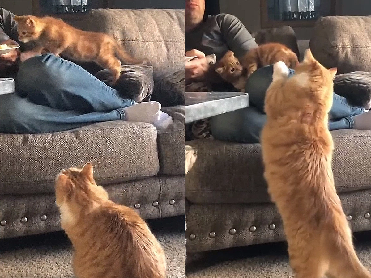 В Сети появился ролик с рыжей кошкой, которая отлупила лапой котёнка за его попытку залезть в тарелку хозяина. Возможно, таким образом мама-кошка решила напомнить пушистому малышу о манерах поведения. Однако даже рядом стоящий пёс опешил от таких методов воспитания. А владелец питомцев, из-за обеда которого случился весь сыр-бор, похоже, даже не заметил семейных разборок.