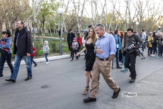 Далее все рассаживаются по автобусам и отправляются уже на территорию космодрома, который расположен от закрытого города в значительном удалении. На дороге повсюду встречаются представители различных силовых структур и вооруженная охрана.