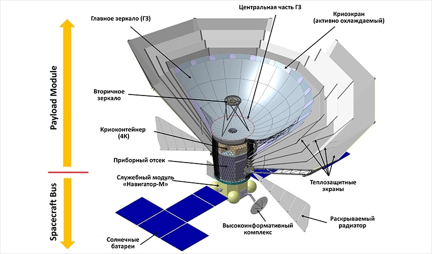 Системой развертывания зеркала и теплоизоляции занимаются в Красноярске на «ИСС им. М. Ф. Решетнева». Предварительные испытания механизма раскрытия щита, криоэкрана и телескопа уже прошли несколько лет назад.