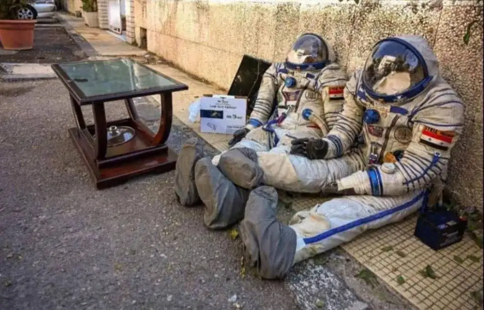 Сцена на фотографии ниже выглядит как злая карикатура на историю. В том, что осталось от сирийского государства, джихадисты, пришедшие к власти на штыках и лозунгах, продают на улице его скафандр и скафандр дублёра — музейные экспонаты, украденные и выставленные на барахолке. Экипировка человека, побывавшего в космосе, стала товаром среди ржавого хлама и контрабанды. Не потому, что она никому не нужна, а потому что сама идея космоса для этой реальности больше недоступна.