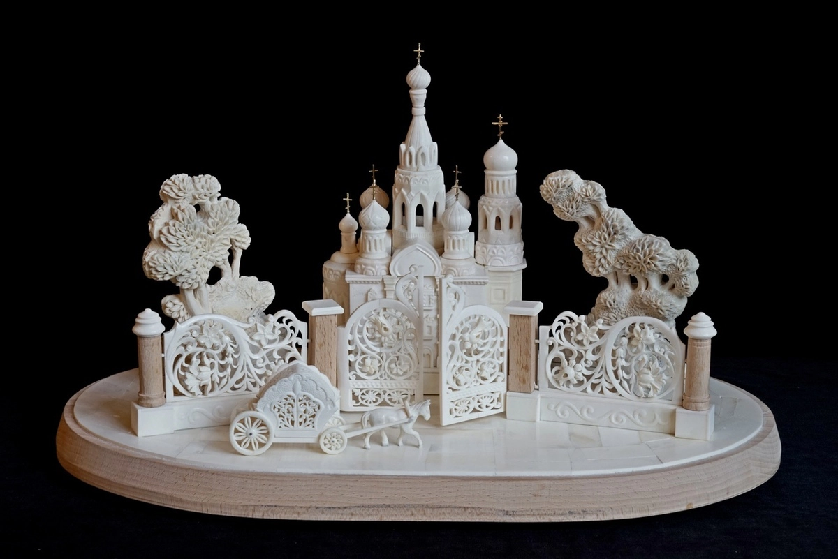 «Мне самой, конечно, хочется поработать бивнем мамонта. Так же есть идеи на создание изделий из кости с инкрустацией, например, перламутром, бирюзой, жемчугом. Рог оленя и лося я использовала в создании работы с храмом, а также в других ученических работах, поэтому я с этим знакома и меня он не привлекает, как материал. У рога очень сильный запах и сам по себе он достаточно пористый. Чаще всего на нем нельзя выполнить тонкую сквозную резьбу», — заключила она.