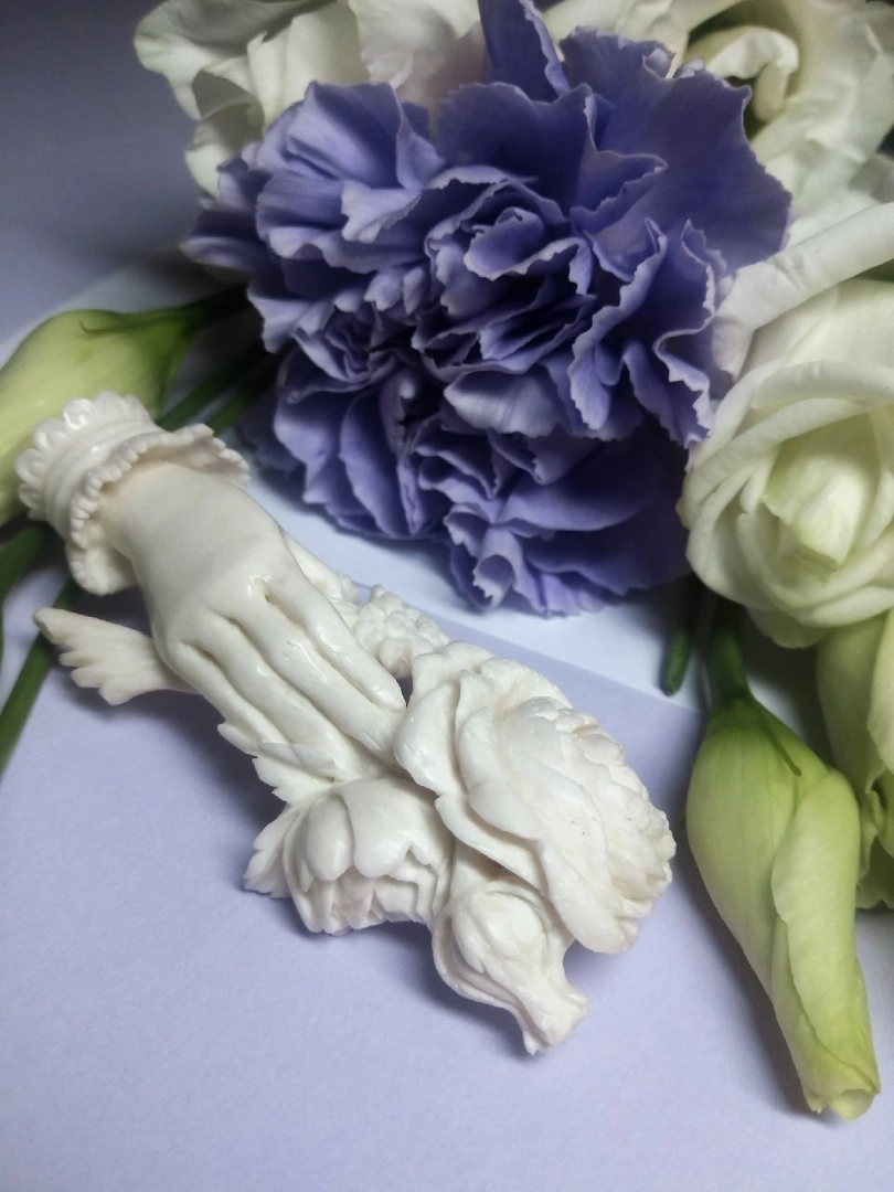 «К каждому виду кости нужен свой подход, так как все они немного отличаются по структуре. Материал достаточно твердый, но вместе с этим и довольно хрупкий. Все зависит от изделия — тонкий ажурный веер или же это скульптура, здесь разница значительная. Инструменты используются как современные — ювелирные бормашины и фрезы с борами, ювелирные ручные лобзики, так и те, которыми пользовались мастера в 17 веке, например, клипик и втиральник. „Древние“ инструменты каждый мастер сам изготавливает под себя»