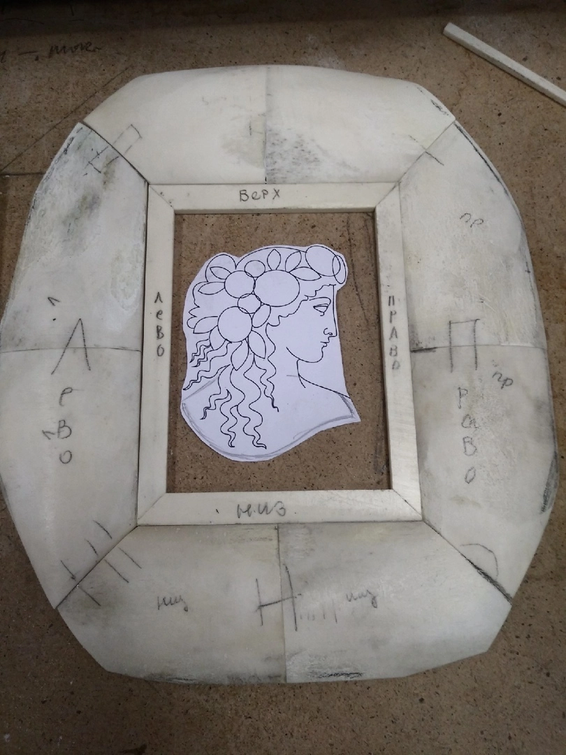 В работе костореза всё, как и у многих, начинается с эскиза. Чем их больше, тем лучше. В голове всегда есть образ, но лучше его зарисовать и что-то поправить, чтобы более точно выразить задуманное. Резьба по кости сильно отличается от резьбы по другим материалам, в частности, дереву. Это связано как с используемыми инструментами, так и с применямой техникой. Как правило, изделия из кости выполняются не из цельного куска кости, а состоят из элементов собранных между собой. Это придает работе защиту от внешних факторов.