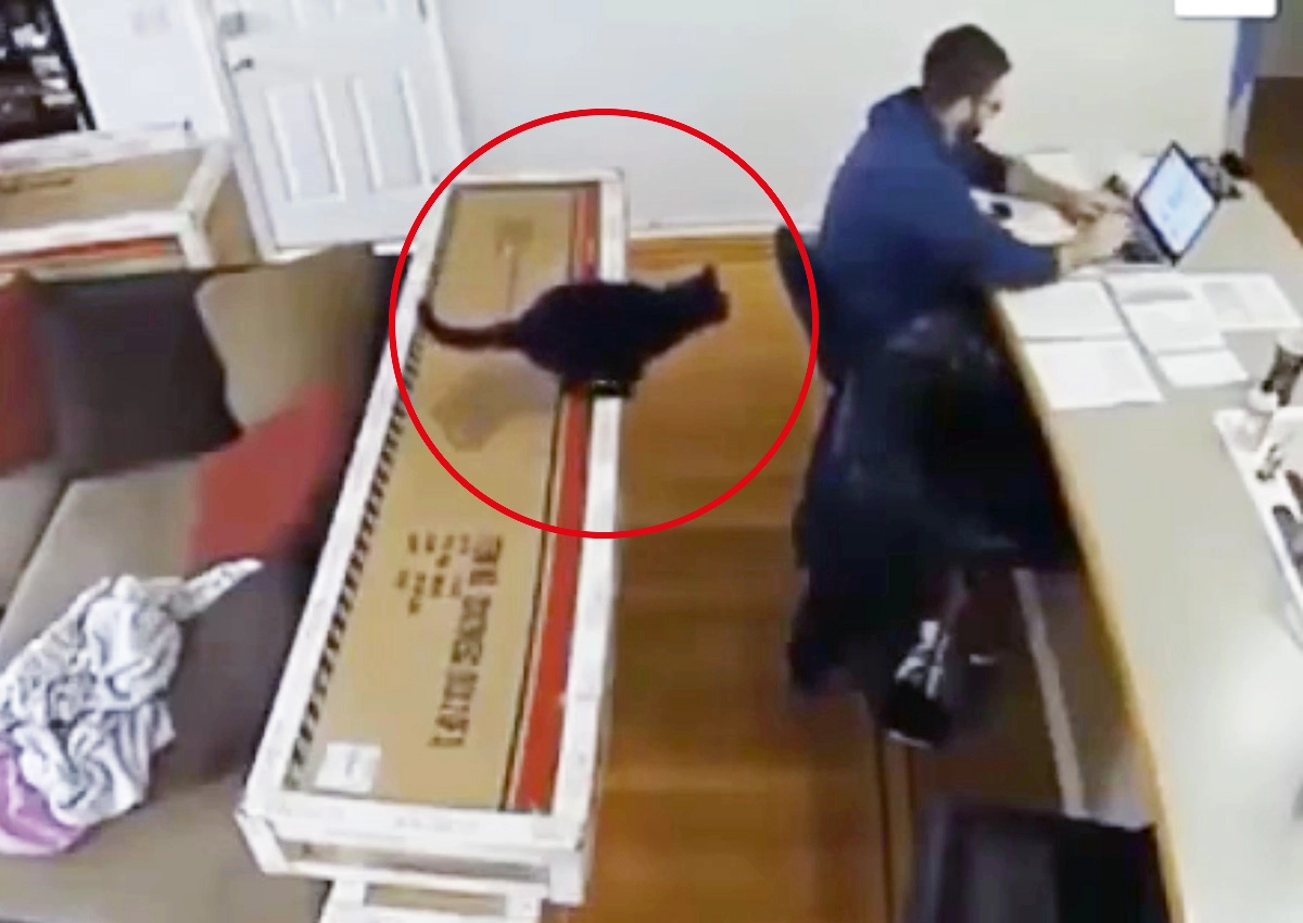 Домашние питомцы любят наблюдать за тем, чем занимаются их хозяева. Кот из этого ролика решил сесть поближе к своему владельцу, который в это время работал за ноутбуком, аккуратно разложив на столе документы. Котейка подкрался сзади, рассчитал траекторию и прыгнул. Однако он не ожидал, что бумаги, лежащие на столе, окажутся такими скользкими.