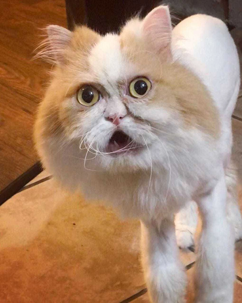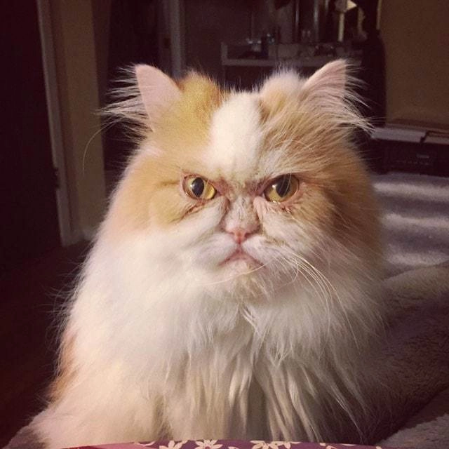 Персидский кот по кличке Луи (Louis) родился с необычным строением морды, благодаря которому теперь выглядит вечно недовольным старичком. У шестилетнего котика нахмуренные брови, мешки под глазами и очень суровый взгляд, в котором можно прочитать лютую ненависть ко всему живому, однако хозяйка утверждает, что её питомец — неженка и душка с чудесным характером.