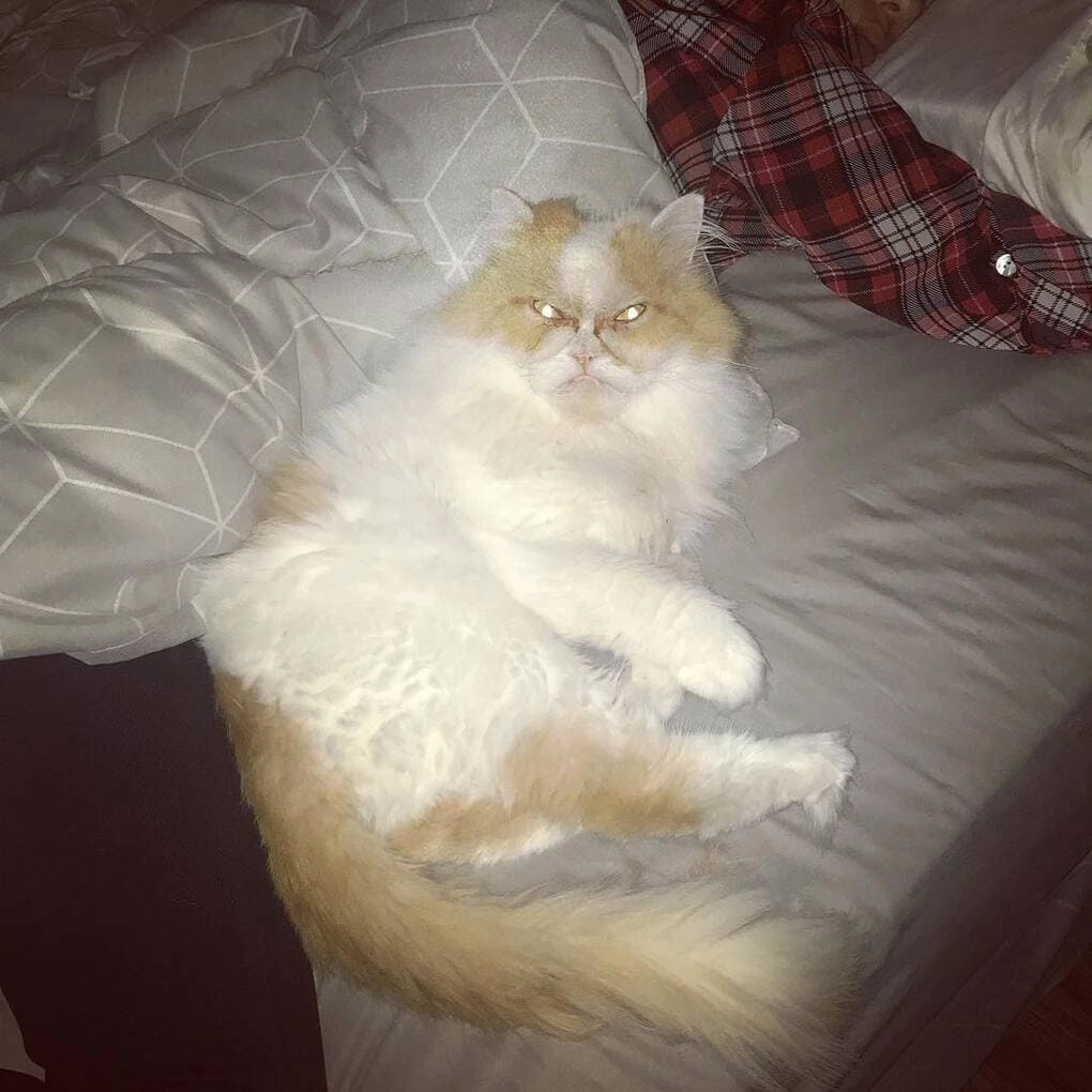 Пользователи соцсетей пришли в восторг от вредного котика, возмутились, почему у него всё ещё не миллион подписчиков в Instagram, а только 4 тысячи, и высказали свои предположения на счёт его сердитой морды:
