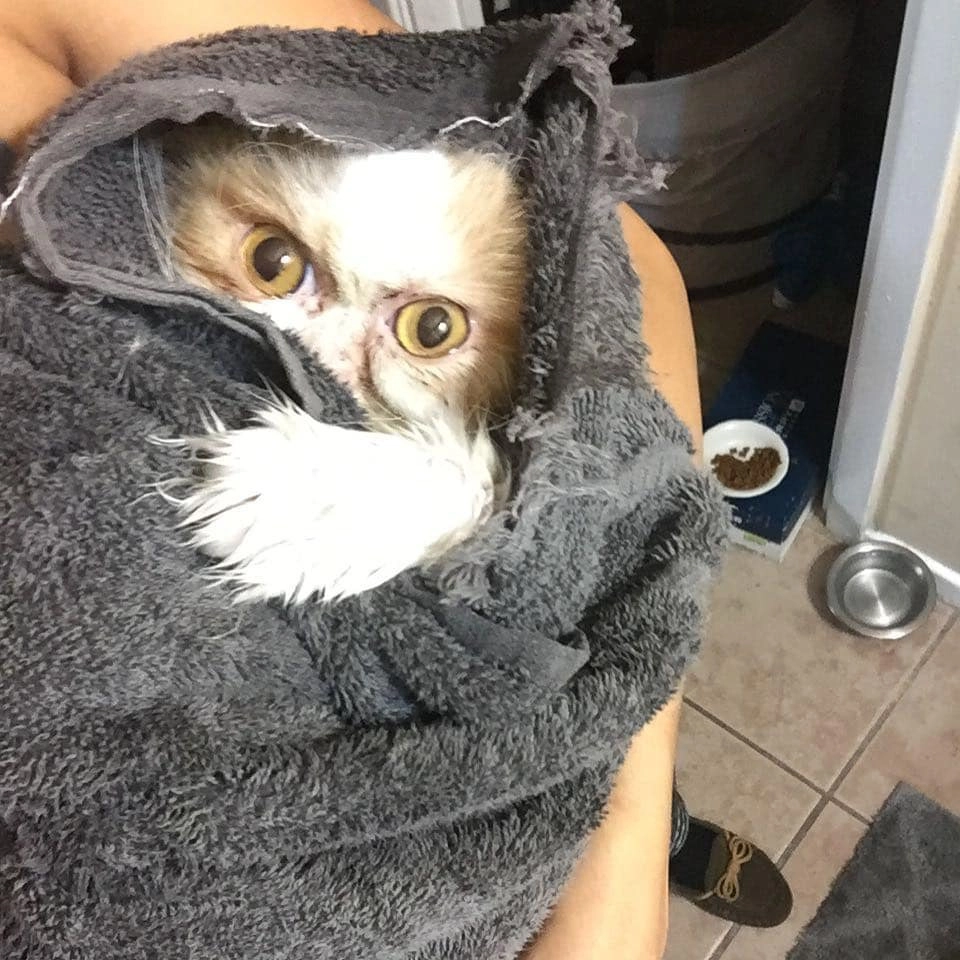 Ворчун Луи живёт в штате Техас со своей хозяйкой — 26-летней медсестрой Мишель Алексис (Michelle Alexis) и сородичем — сиамским котом по кличке Мона. Девушка рассказала изданию DailyMail, что Мона родилась на два года позже Луи, но почему-то сразу решила, что он — её игрушка и начала гонять его по всему дому. Может поэтому у бедняги всегда такой всклокоченный вид.