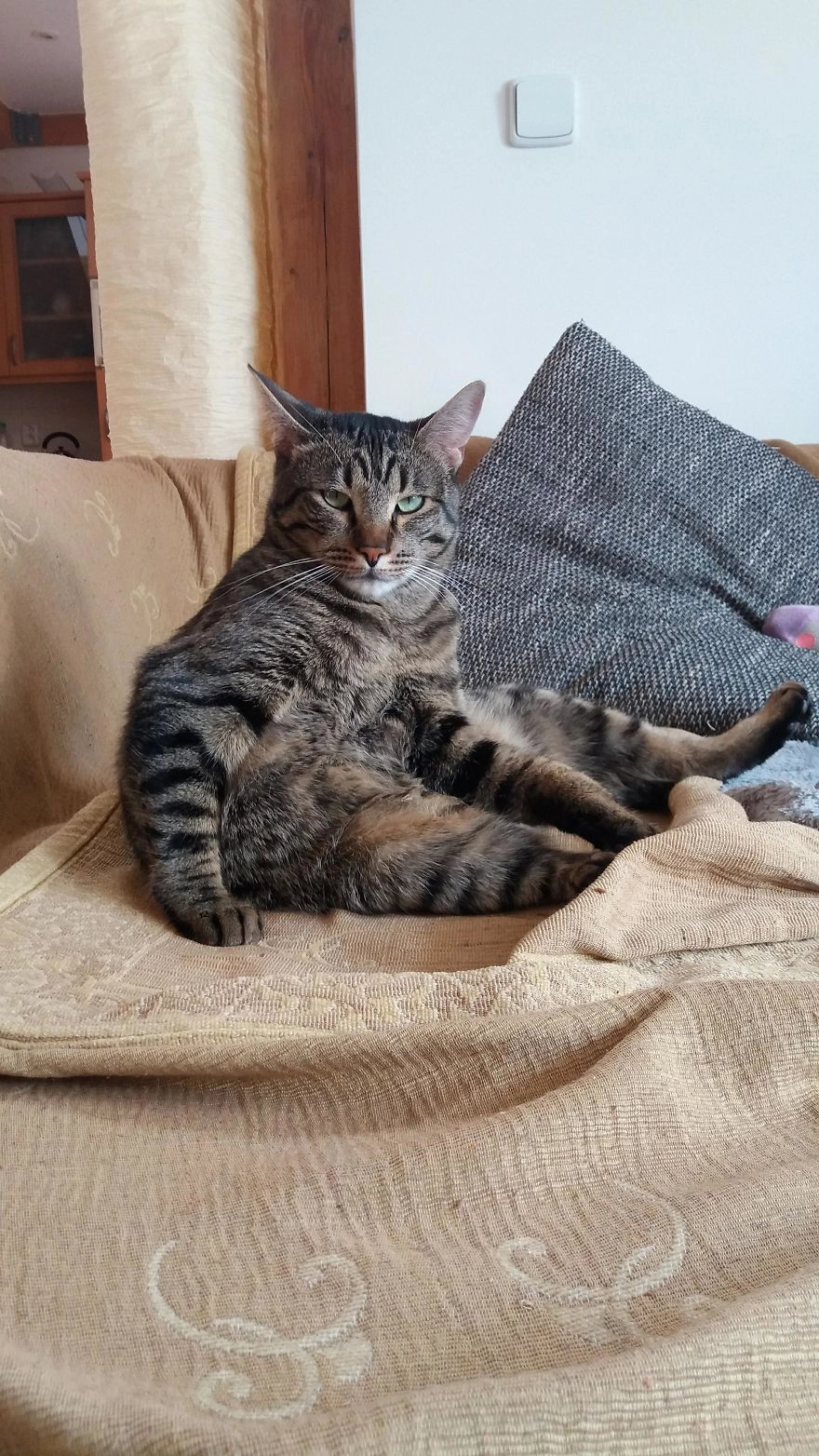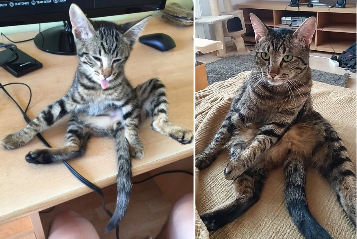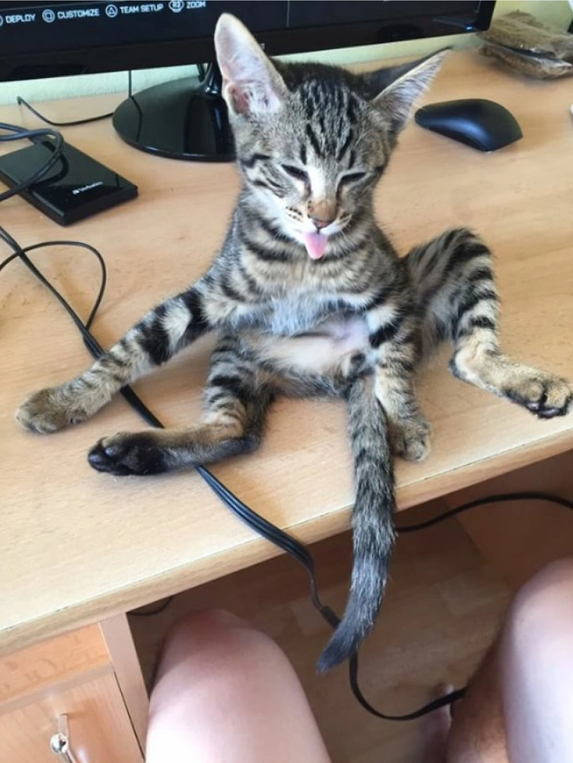 Способность сидеть по-человечески у котёнка появилась ещё в детстве