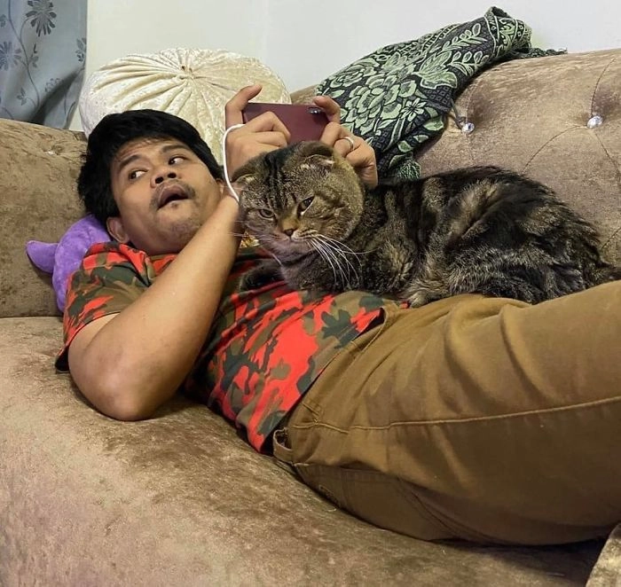 Молодая пара из Таиланда прославилась на весь мир после того, как Насрин Хами опубликовала в соцсетях фотографии своего супруга и кота. На снимках рядом с мужчиной сидит его любимый питомец по кличке Джарвис, который всем своим видом демонстрирует любовь к хозяину и неприязнь к хозяйке.