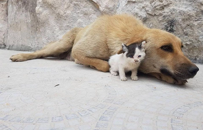 Котёнок-сирота убедил собаку стать его мамой