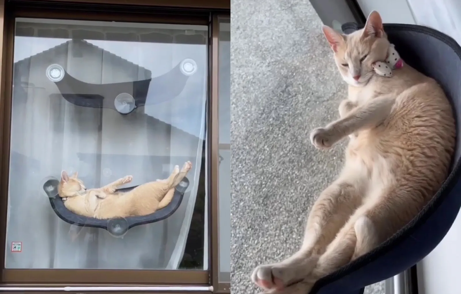 Котик, принимающий солнечные ванны в оригинальной лежанке, очаровал Сеть