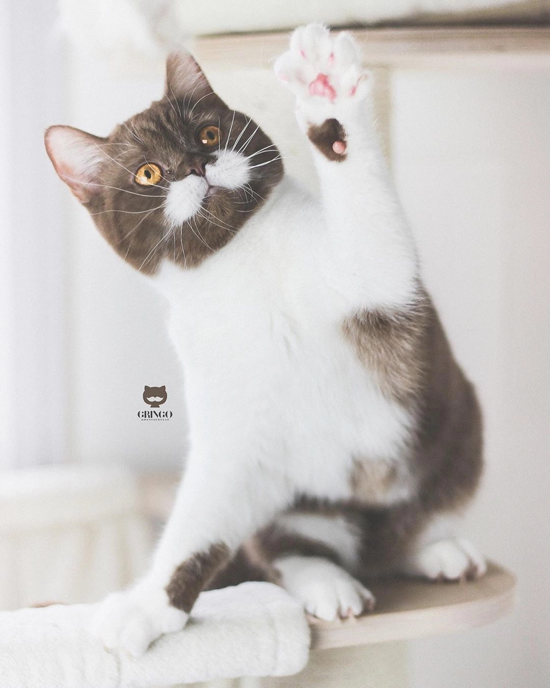 «Наш усатый Гринго — настоящий француз и внешностью, и душой. Он очень активный котёнок, всегда полон жизни и энергии и может играть день и ночь. У Гринго нежный характер, с ним никогда не скучно, мы его просто обожаем!», — признаётся хозяйка кота Сабрин.