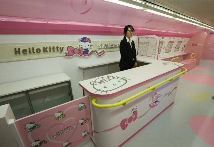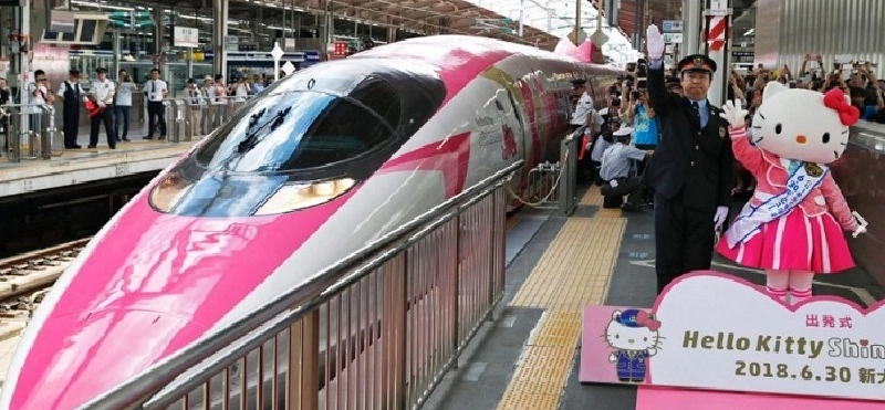 Летом 2018 года в Японии появился поезд-пуля «Синкансэн», оформленный в стиле знаменитого мультфильма Hello Kitty. Его не просто покрасили в розовый цвет: отделка восьми вагонов состава также соответствовала выбранной тематике.
