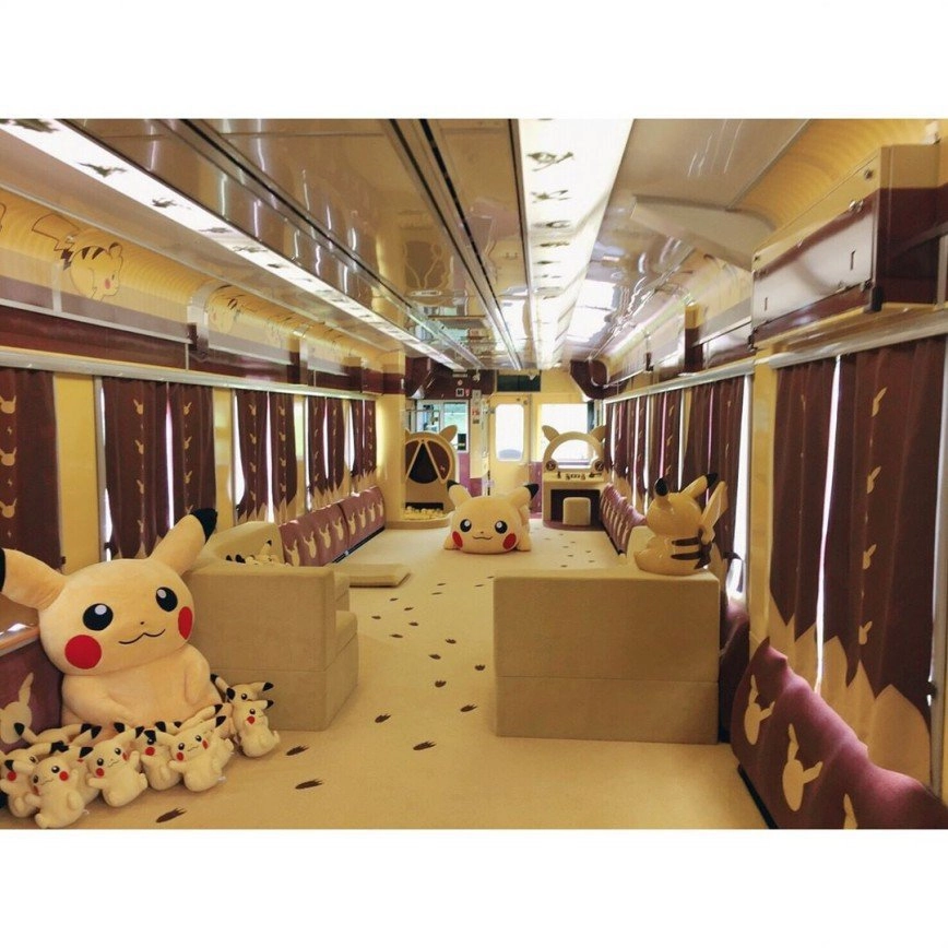 Есть еще один интересный поезд, курсирующий в Японии, — Joyful Train (радостный поезд) в тематике Пикачу из любимого мультфильма «Покемон». Состав ходит от города Итиносэки в префектуре Иватэ до станции Кэсэннума в Мияги. Помимо удобных кресел и красивых видов за окном, пассажиров поезда Pokemon with You, ждет приятная возможность посетить игровой вагон, где можно попробовать себя в роли машиниста или инженера и поиграть с разнообразными гаджетами, расположенными вокруг большой фигуры Пикачу в центре вагона.
