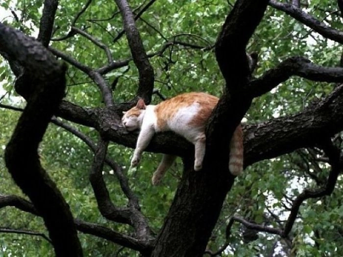 Если бы существовал конкурс на умение засыпать в самых неудобных и странных местах, то кошки, без всякого сомнения, заняли бы все призовые места. Эти любители хорошенько выспаться даже деревья начали использовать в качестве своих кроватей. И не важно, что в это время на них осуждающе смотрят птицы, а ветка вот-вот сломается.