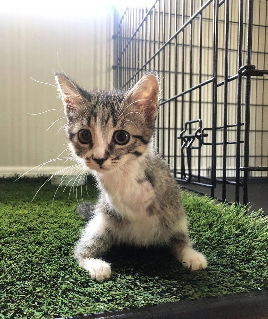 Кошка по кличке Дак была найдена волонтерами на улице в ужасном состоянии, ее привезли в ветеринарную клинику, где врачам удалось спасти животное, но две передние лапки пришлось ампутировать. Котенка забрала себе сестра одной из сотрудниц клиники, девушка не смогла устоять перед немного неуклюжей, но очаровательной малышкой.
