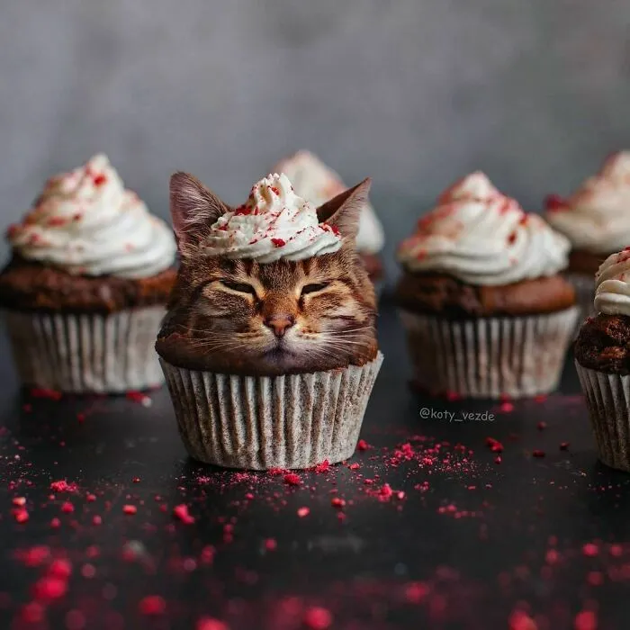 Каким мог бы стать мир, если бы у всего вокруг были кошачьи мордахи? Несколько лет назад об этом задумалась Галина Бугаевская — талантливый иллюстратор из Москвы. С помощью фотошопа она стала совмещать кошачьи «лица» с другими животными, неодушевленными предметами, едой и даже людьми.