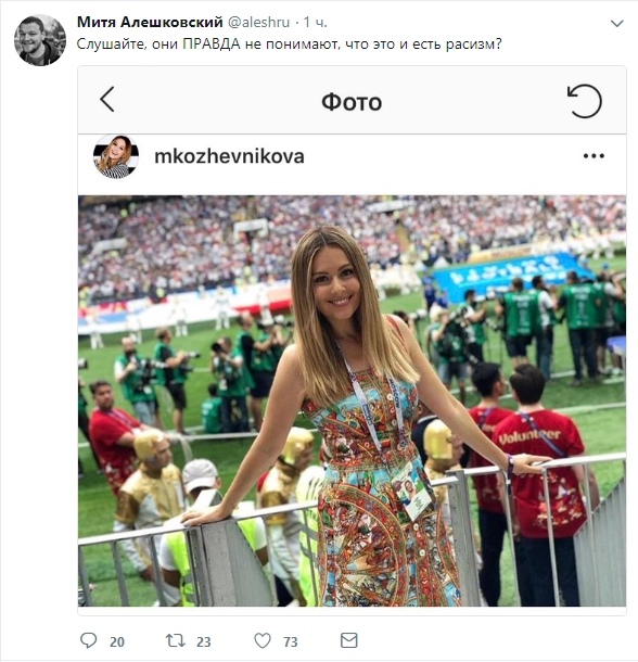 Кожевникову обвинили в расизме за пост о финале ЧМ