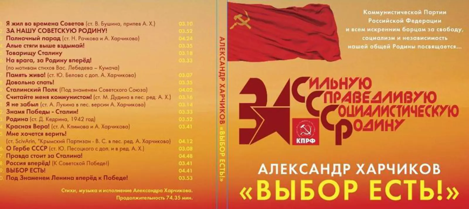 КПРФ в самом деле посодействовала выходу альбома Харчикова «Выбор есть». Более того, коммунисты отчитались о получении благодарности за музыкальный материал от «Советских офицеров Украины» (ВУССО), которые пообещали, что песни Харчикова «будут звучать у Вечного Огня в Киеве на День Победы». Таким образом, активист МГЕР точно «не сам повесил» этот материал на сайт КПРФ.