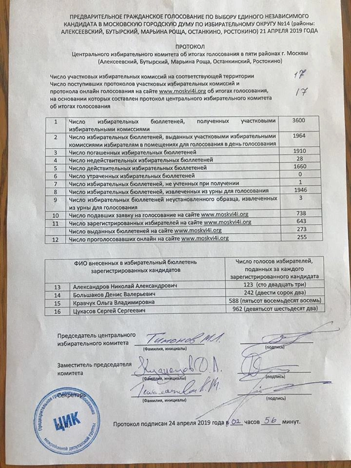Стали известны результаты праймериз оппозиции, в которых принимали участие потенциальные кандидаты в Мосгордуму, желающие баллотироваться в 14 избирательном округе столицы.