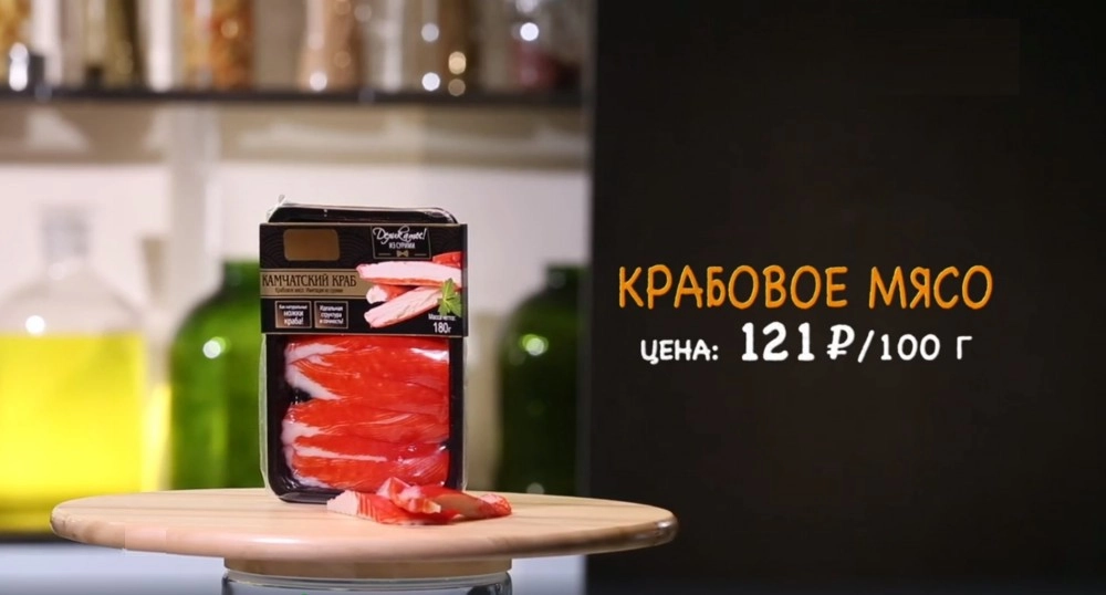 Сегодня цены на крабовые палочки бывают разными. Например, 100 граммов иногда можно купить всего за 16 рублей. У другого производителя тоже количество обойдется в 45 руб. А есть еще так называемое крабовое мясо — тоже имитация. Но стоит оно уже 121 рубль за 100 граммов.