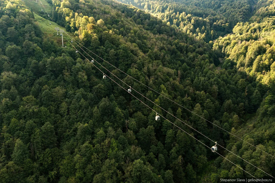23. Поляну 540 и 960 соединяет извилистая горная дорога. Но попасть в «Верхний город» можно и на канатной дороге. Перепад высоты на этом подъёмнике — 436 метров. Каждая кабинка вмещает 8 человек, а время в пути составит всего 7-10 минут.