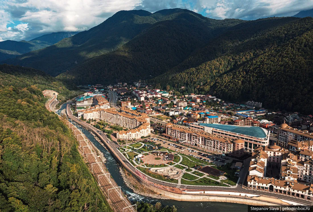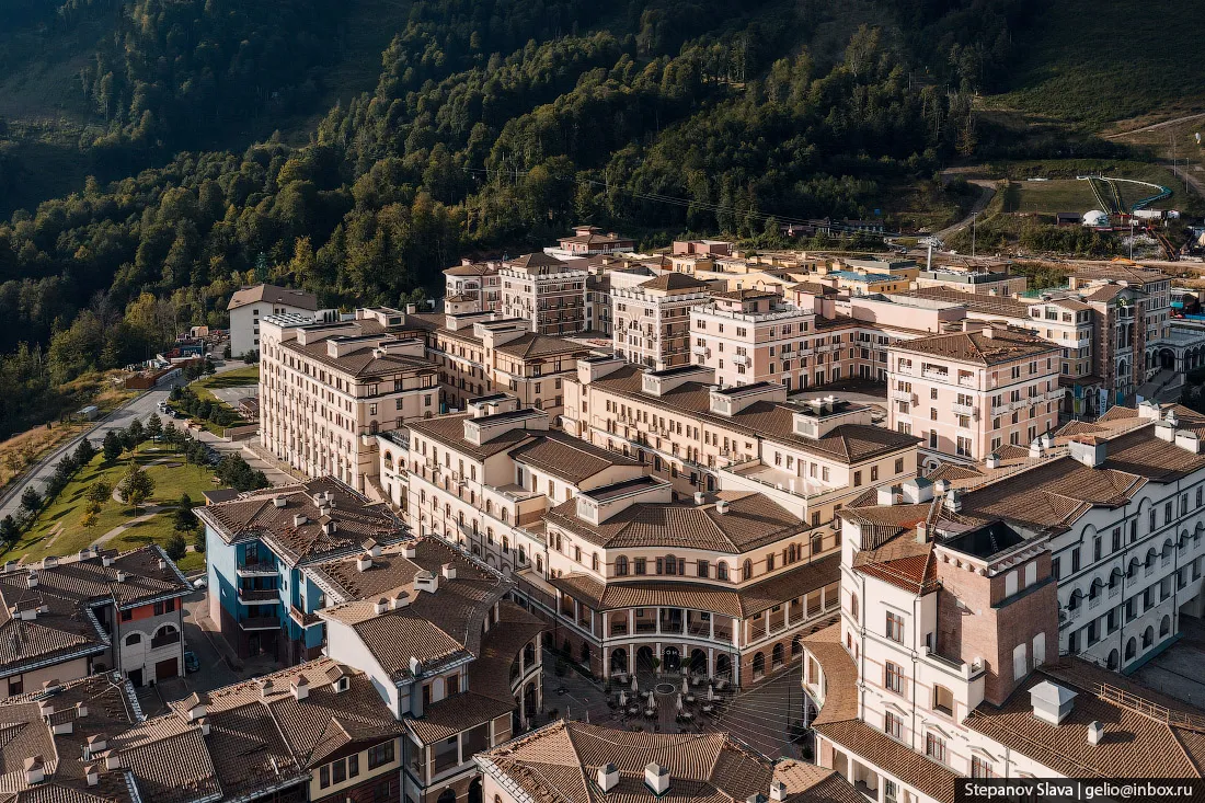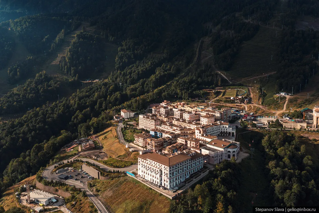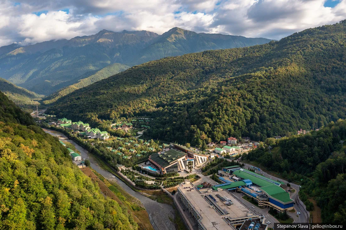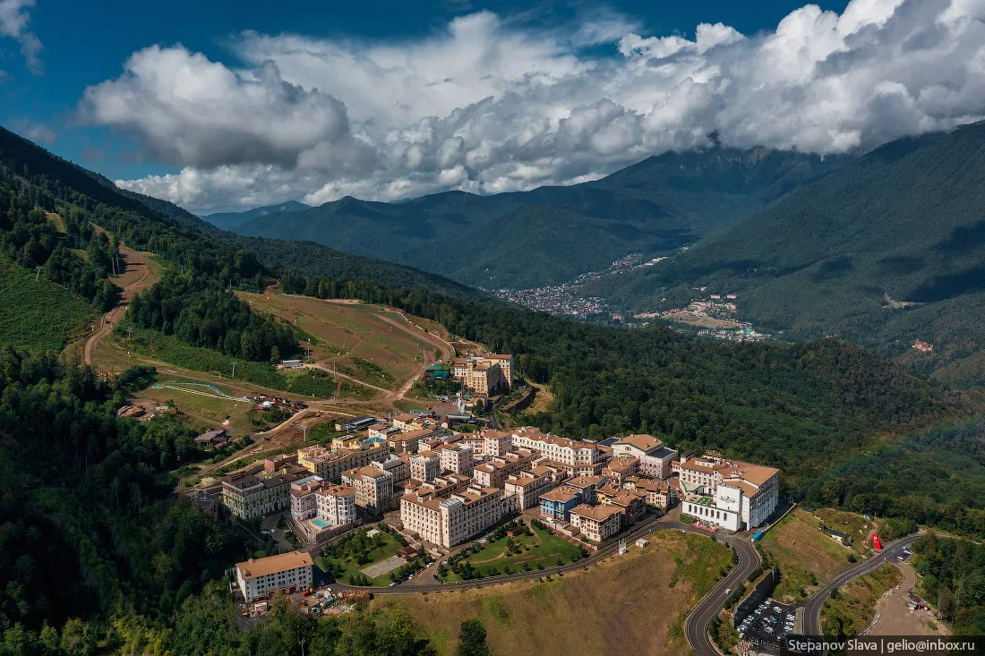 37. Еще до того, как Сочи выбрали местом проведения Зимней Олимпиады 2014 года, на этом месте планировали создавать горнолыжный курорт. Но о таких масштабных изменениях речь не шла. Именно из-за Олимпиады здесь появился новые посёлки с отелями, развлекательными центрами, горнолыжными трассами.
