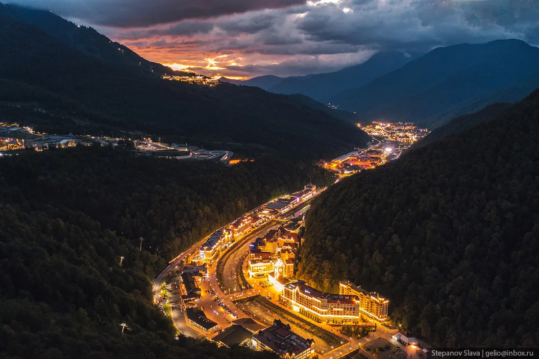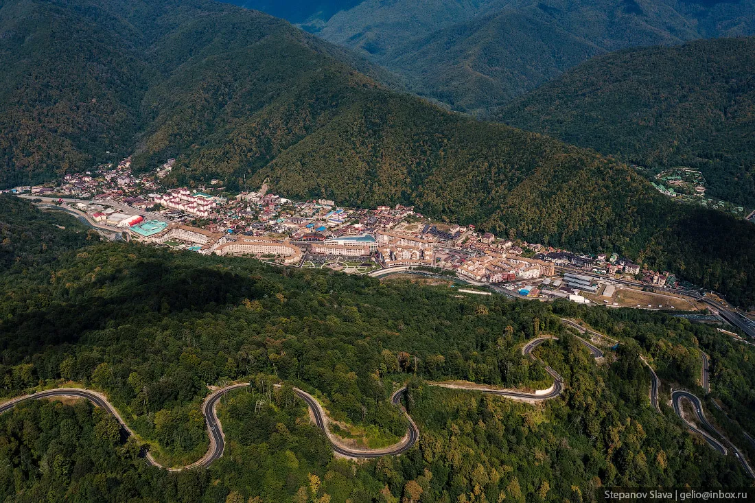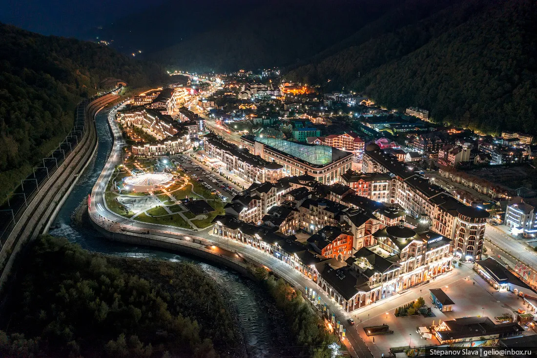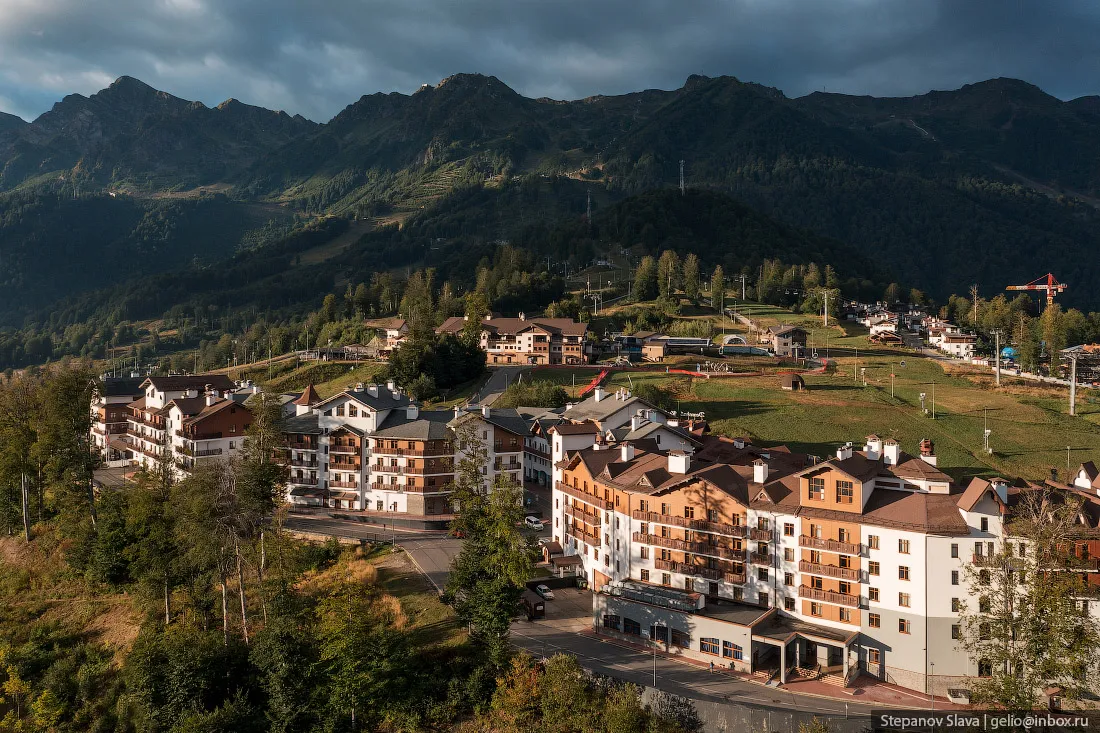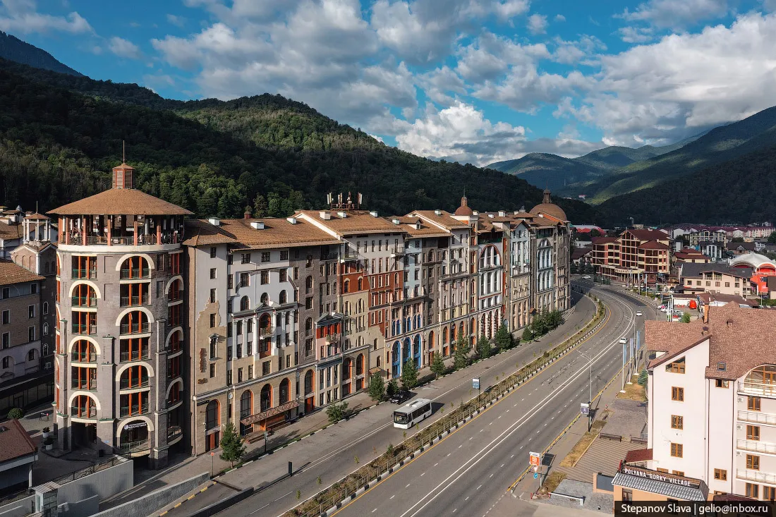 37. Еще до того, как Сочи выбрали местом проведения Зимней Олимпиады 2014 года, на этом месте планировали создавать горнолыжный курорт. Но о таких масштабных изменениях речь не шла. Именно из-за Олимпиады здесь появился новые посёлки с отелями, развлекательными центрами, горнолыжными трассами.