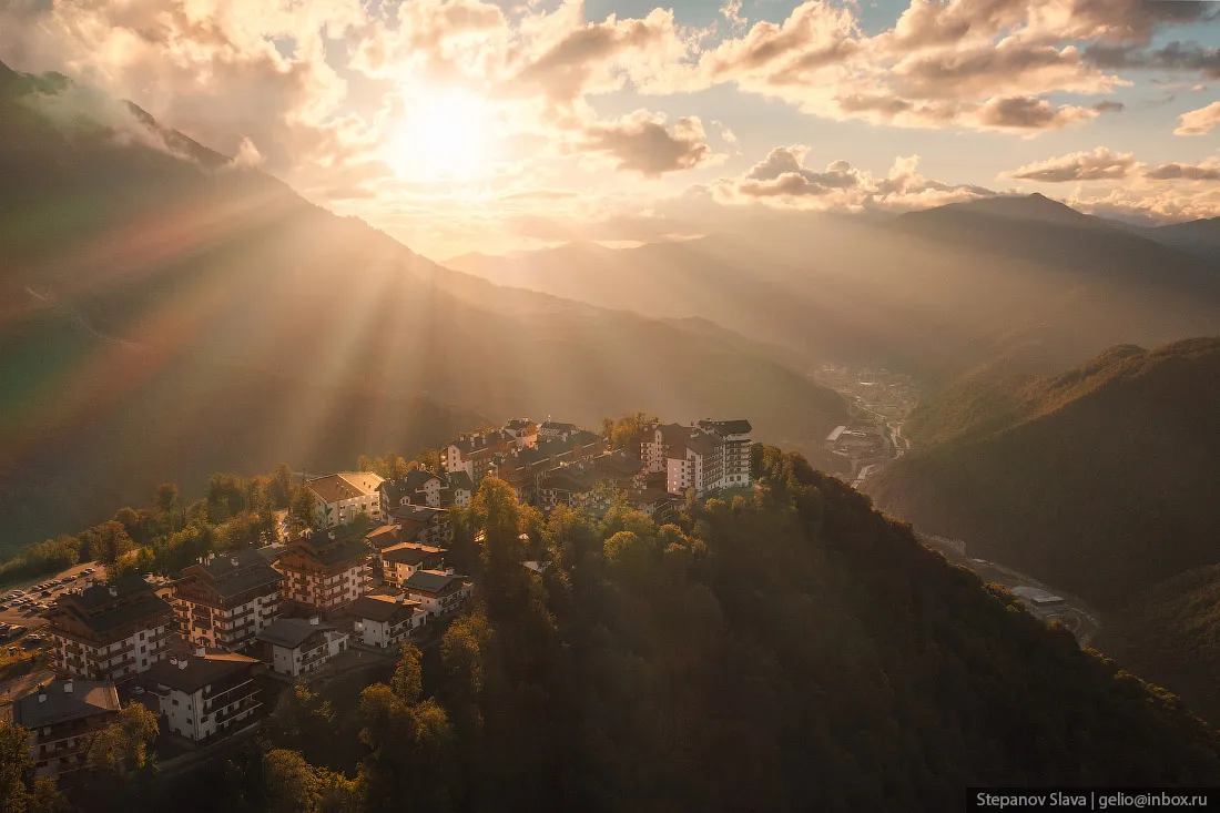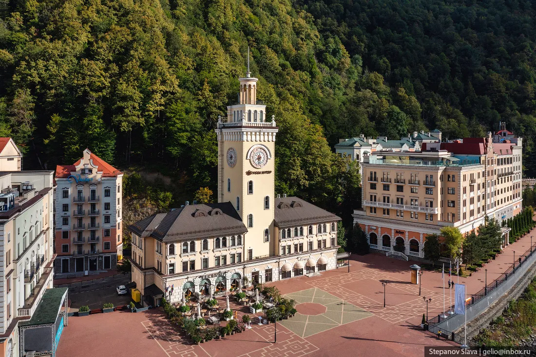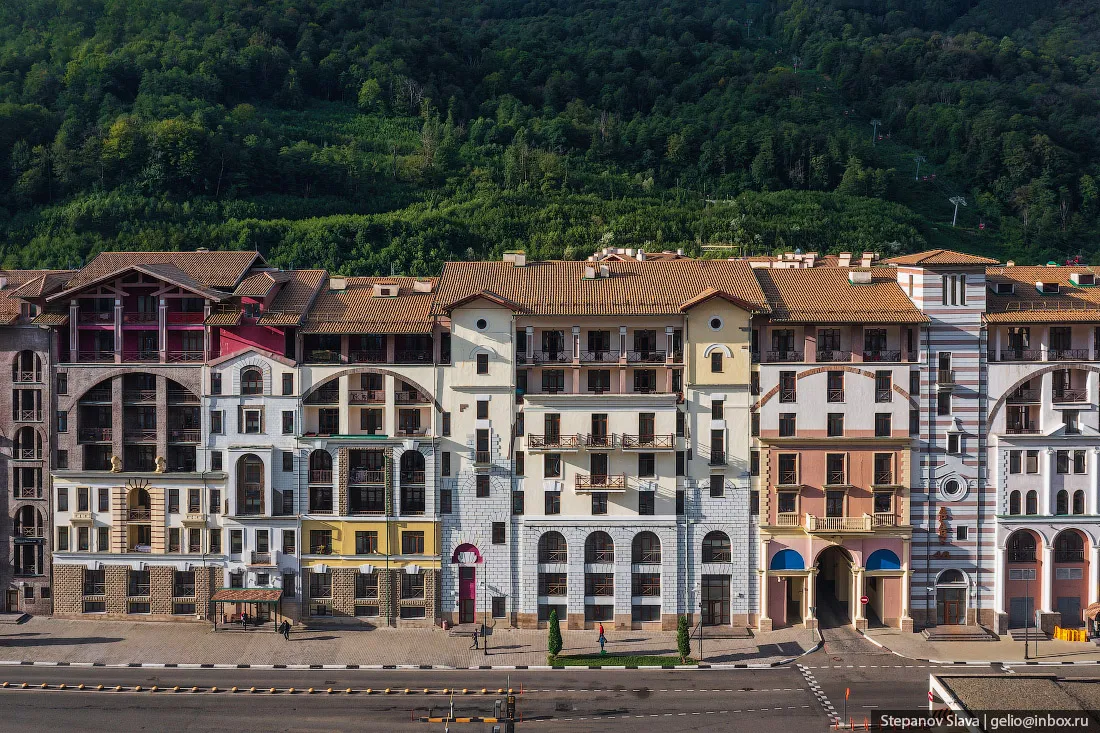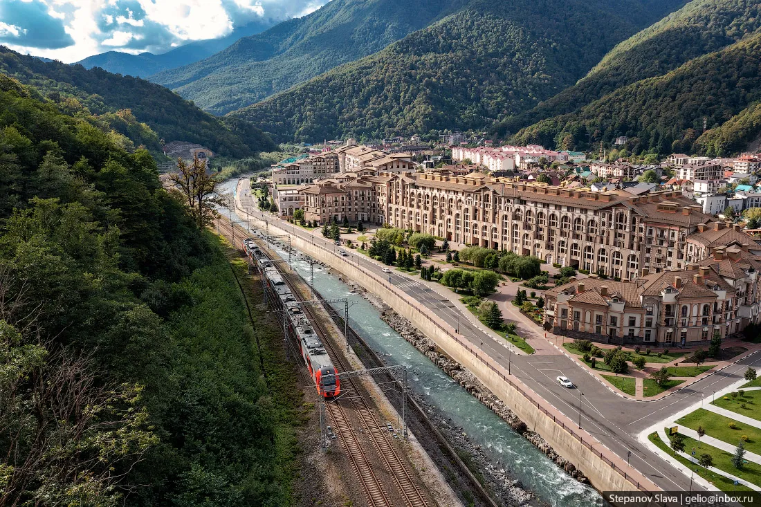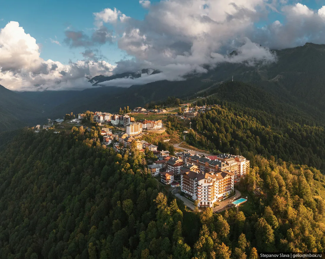 37. Еще до того, как Сочи выбрали местом проведения Зимней Олимпиады 2014 года, на этом месте планировали создавать горнолыжный курорт. Но о таких масштабных изменениях речь не шла. Именно из-за Олимпиады здесь появился новые посёлки с отелями, развлекательными центрами, горнолыжными трассами.